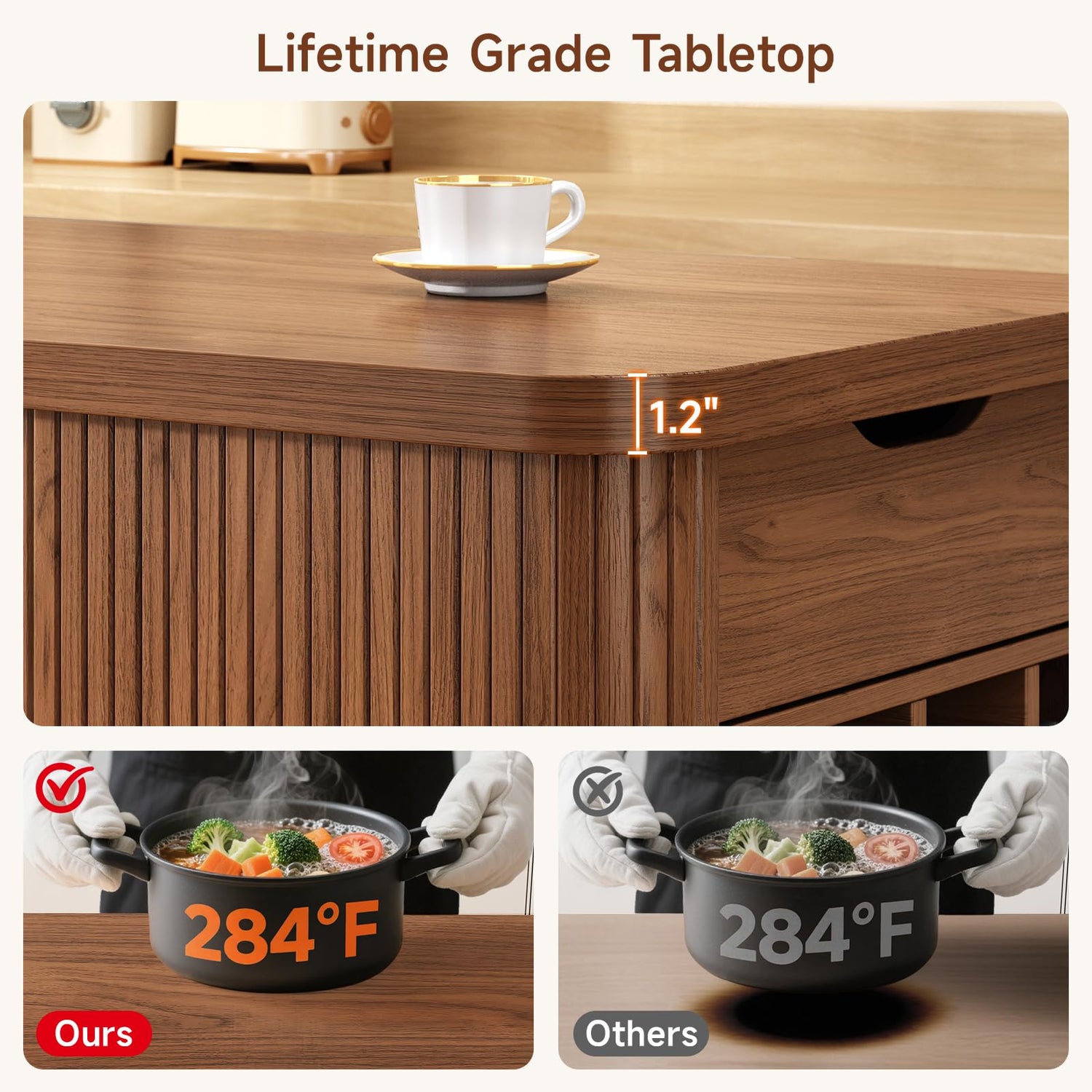 • 【Solid Island table】 Crafted from commercial grade engineered wood for lasting durability, this bar table combines farmhouse charm texture with practical features: spill-proof, Scratch armored surface and 30 second wipe clean maintenance, saving your time and effort. Engineered to safely support up to 200 lbs, it ensures reliable strength for daily use while seamlessly balancing aesthetics and functionality