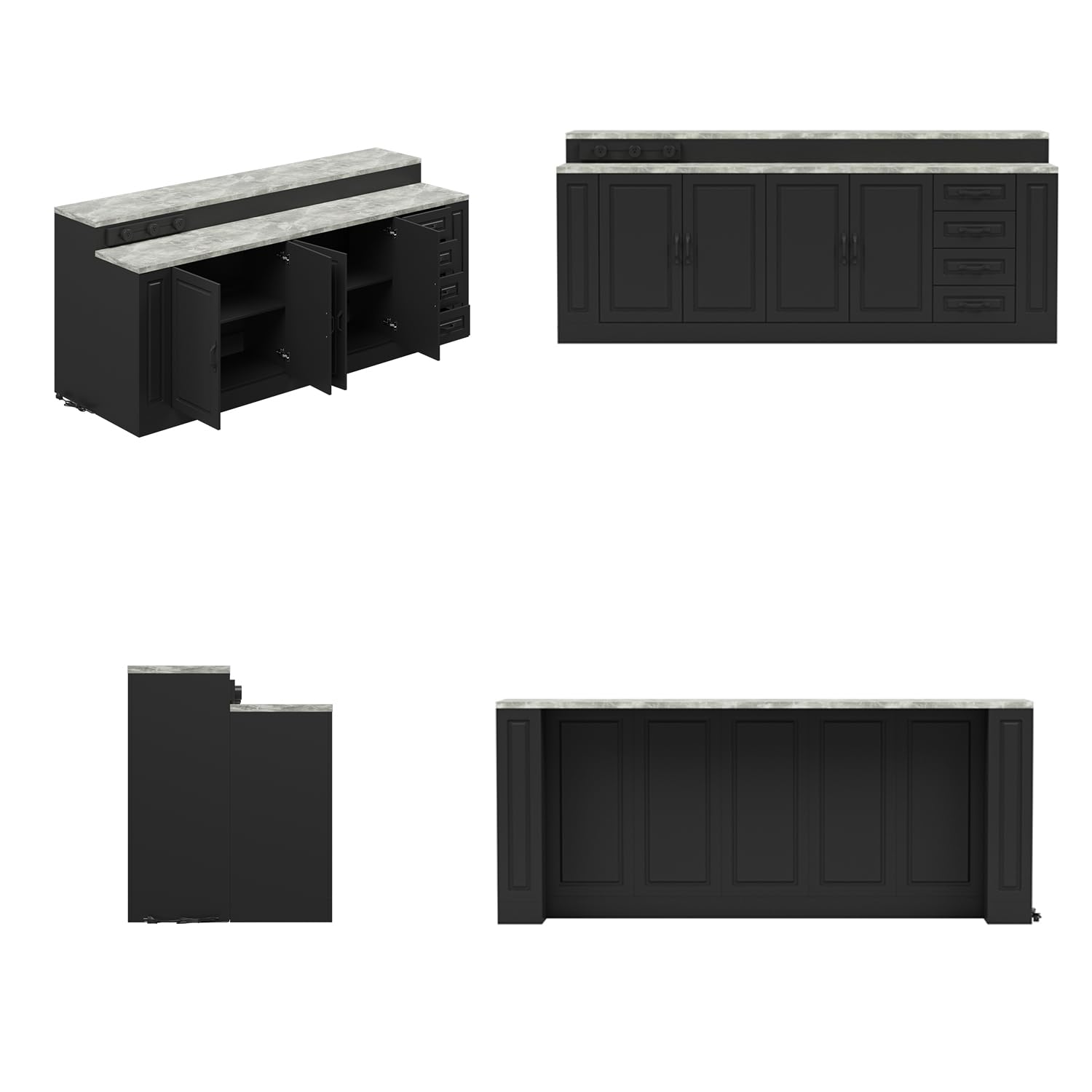 WOODTIME 94.5" W Stationary Kitchen Island Storage Cabinet with Built-in Power Outlet, 2 Countertop, Adjustable Shelves & 3 Drawers for Dining Room, Black & Marble Grain