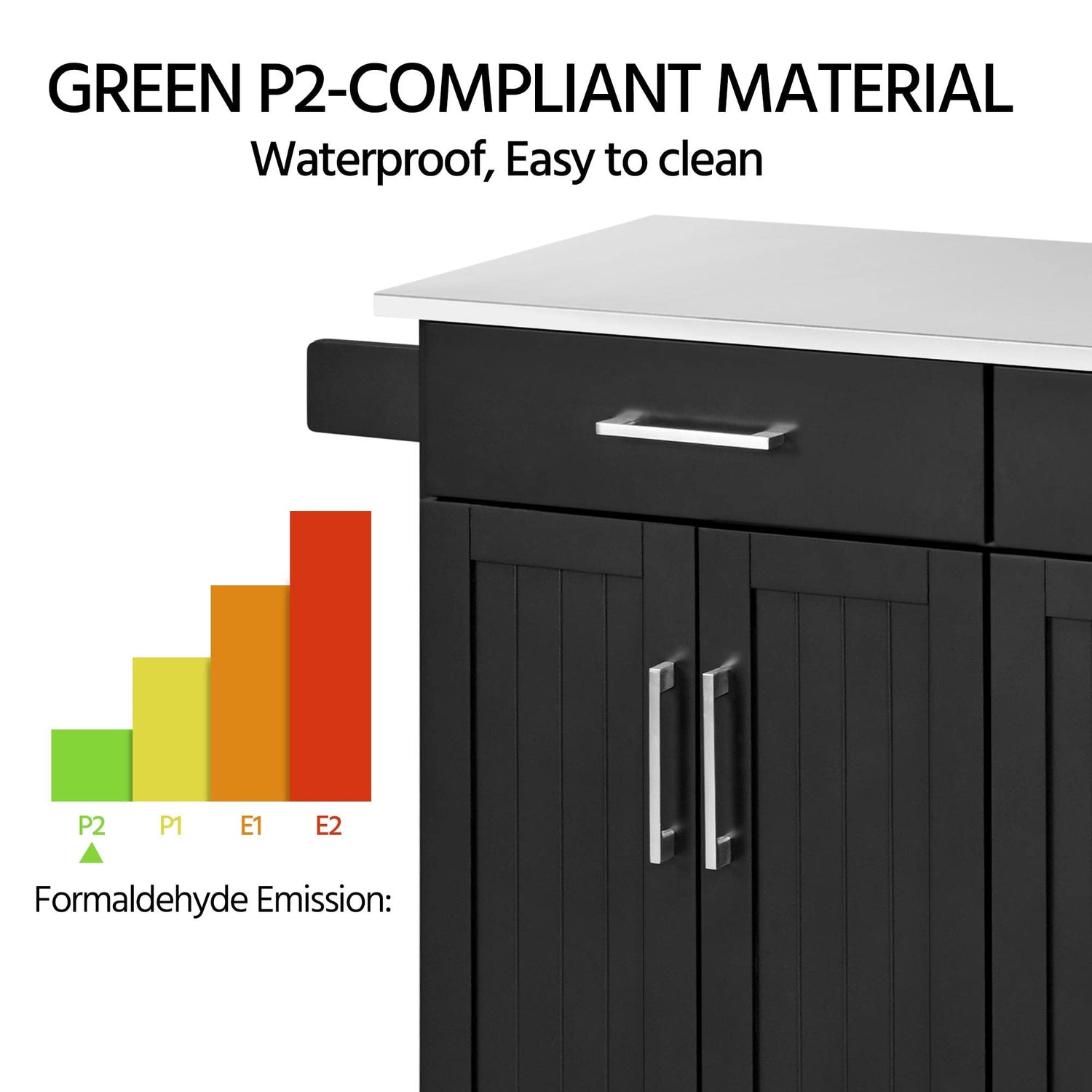 Yaheetech Rolling Kitchen Island with Stainless Steel Top, Kitchen Cart Storage Cabinet on Wheels with 2 Drawers and Inner Adjustable Shelves for Dining Room, 50.5 Inch Width, Black