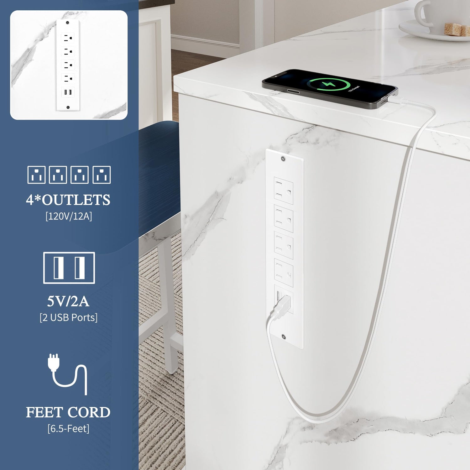 - Built-in Charging Station: Equipped with two AC outlets and two USB ports for easy appliance charging. Ideal for keeping your coffee machine, juicer, and other kitchen appliances ready to go. Comes with clear, step-by-step instructions and necessary hardware for quick assembly.