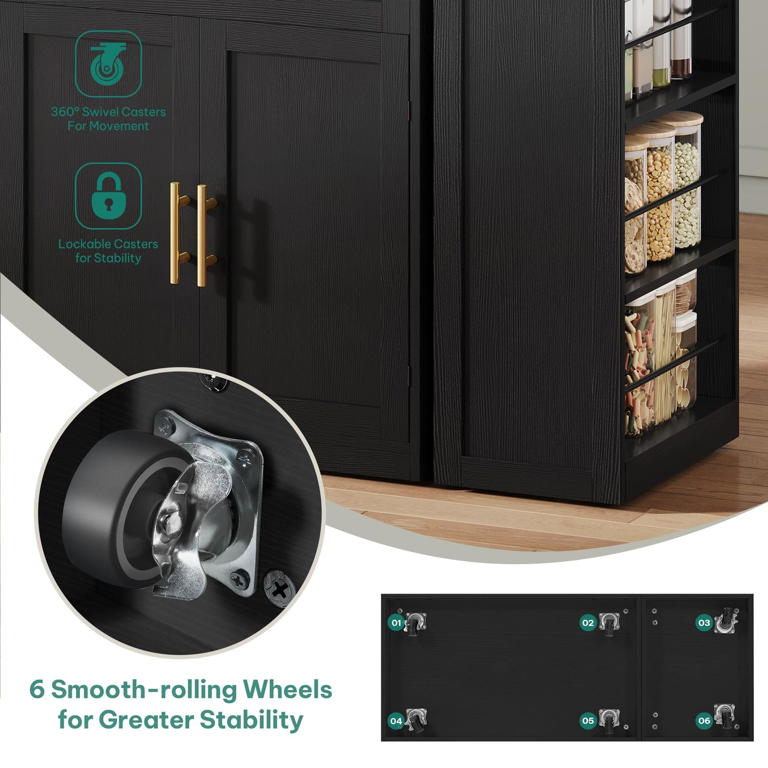 - Transformed into L-shaped: Features a retractable countertop. It smoothly glides out, instantly expanding the usable area of the island. The extended island can be transformed into an L-shaped ensures the island can adapt to a variety of scenarios. Equipped with 6 Removable Universal Wheels, offers easy mobility and can be securely fixed in place as required.