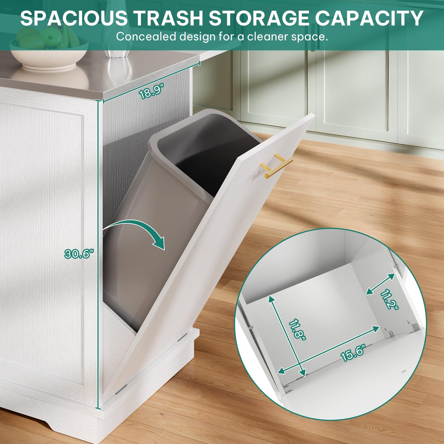- Tilt Out Trash Can Cabinet: The garbage bin storage cabinet is a great addition to your kitchen island. It can house a 13-gallon trash can (not included), preventing the spread of odors and keeping your kitchen & dining room fresher and cleaner.