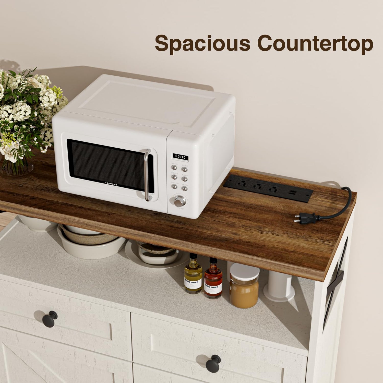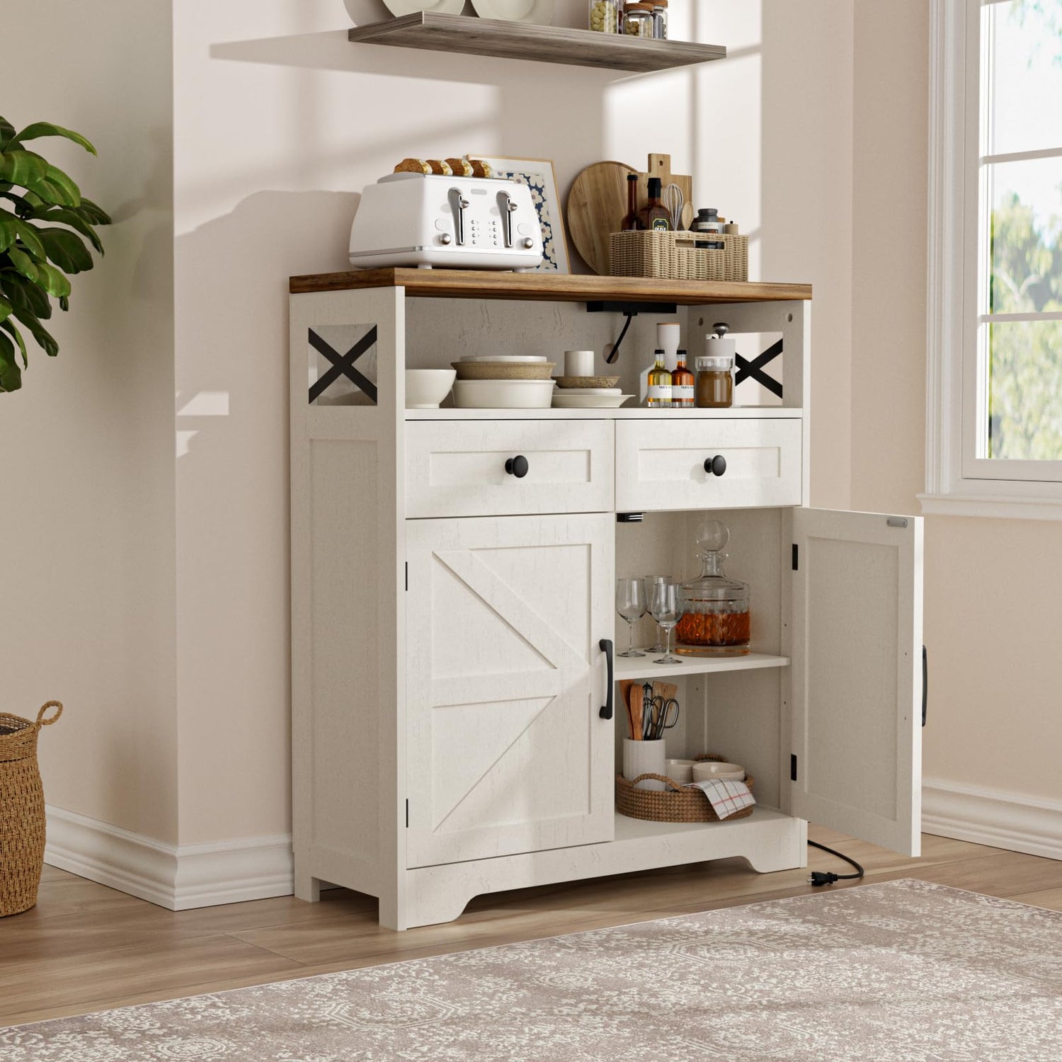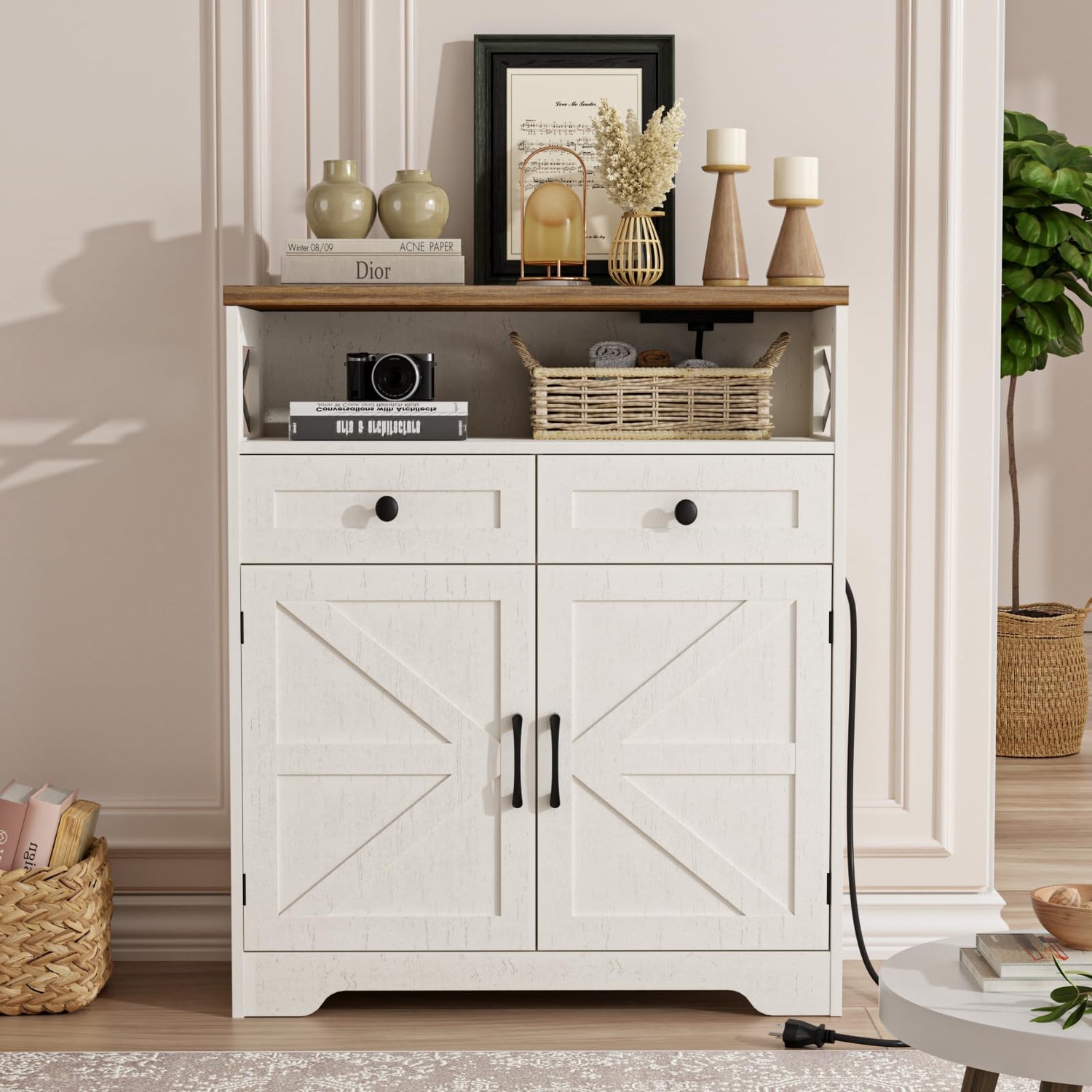 31.5" White Storage Cabinet with Doors & Drawers, Farmhouse Sideboard Buffet Cabinet with Storage, Kitchen Pantry Hutch Cabinet, Coffee Bar Cabinet Table Station for Kitchen, Livingroom, Dining Room