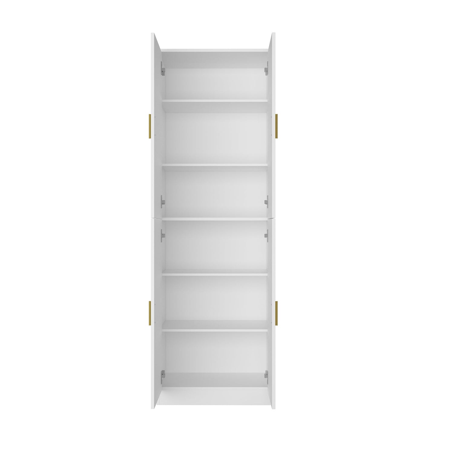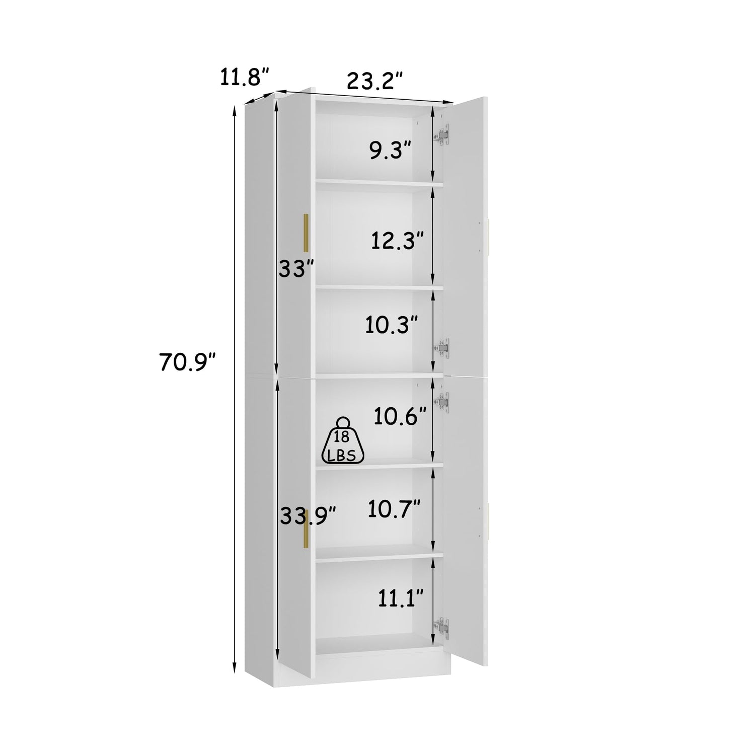 AGOTENI 6-Tier Storage Cabinet with Adjustable Shelves, Wooden Kitchen Pantry Freestanding Cupboard with 4 Doors for Living Room Kitchen Garage, White, 11.8" D x 23.2" W x 70.9" H