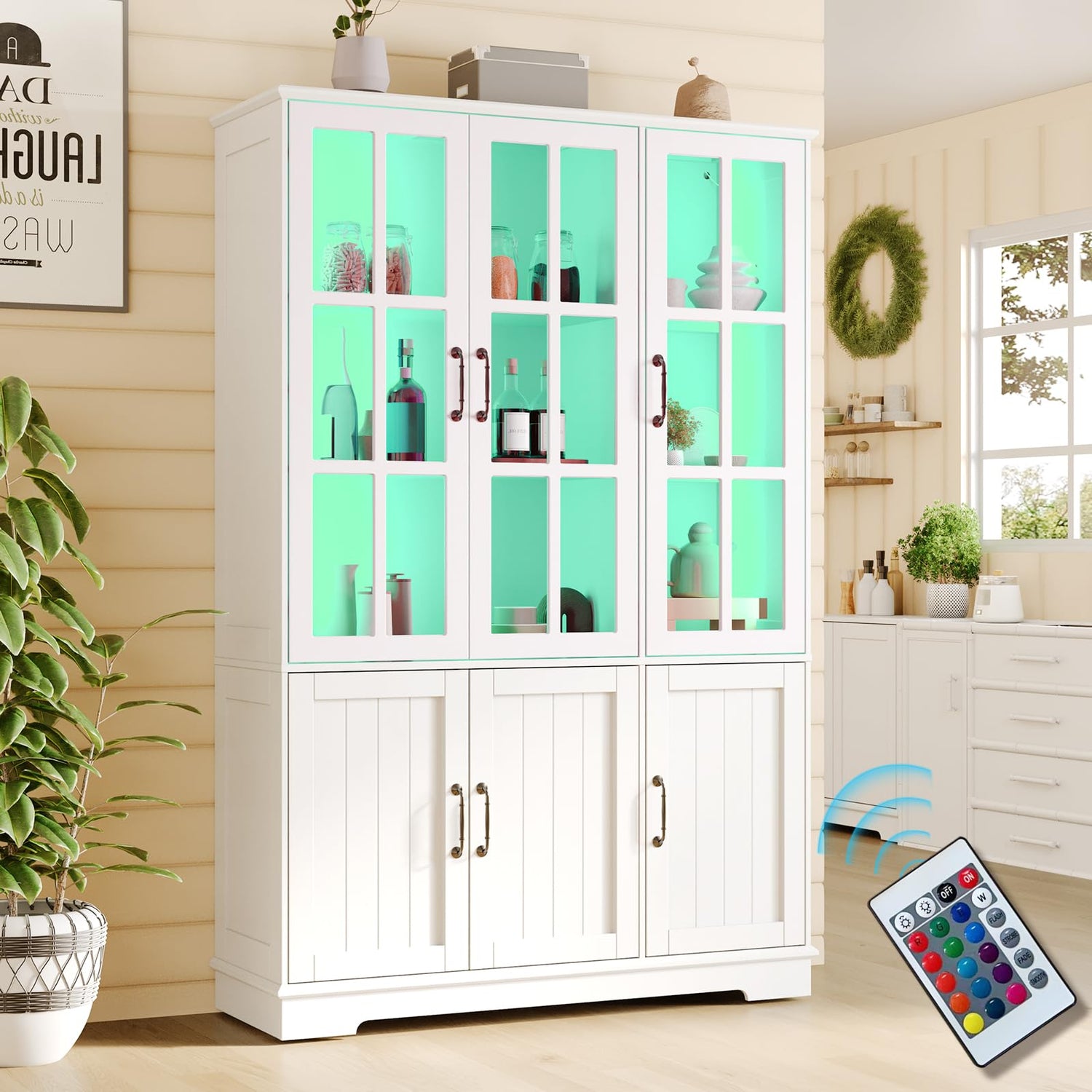 - Eye-catching LED Lights: Kitchen pantry storage cabinets with LED feature 16 colors and 4 dynamic light modes. You can change the lights to suit your mood with the remote. Combined with transparent acrylic doors, it will look amazing and gorgeous at night