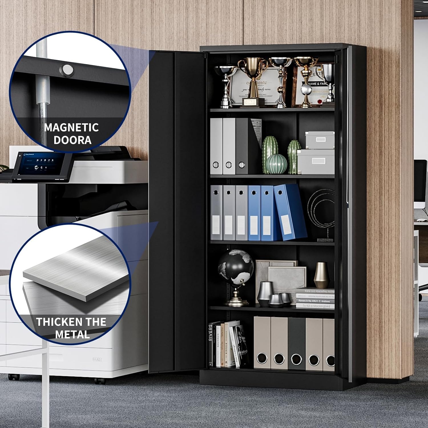 Approgreent Steel Storage Cabinet with 5 Adjustable Shelves, Garage Shelving Cabinet with 2 Lockable Doors, Tool Cabinet for Garage Storage, Pantry Cabinet - 71'H, Black