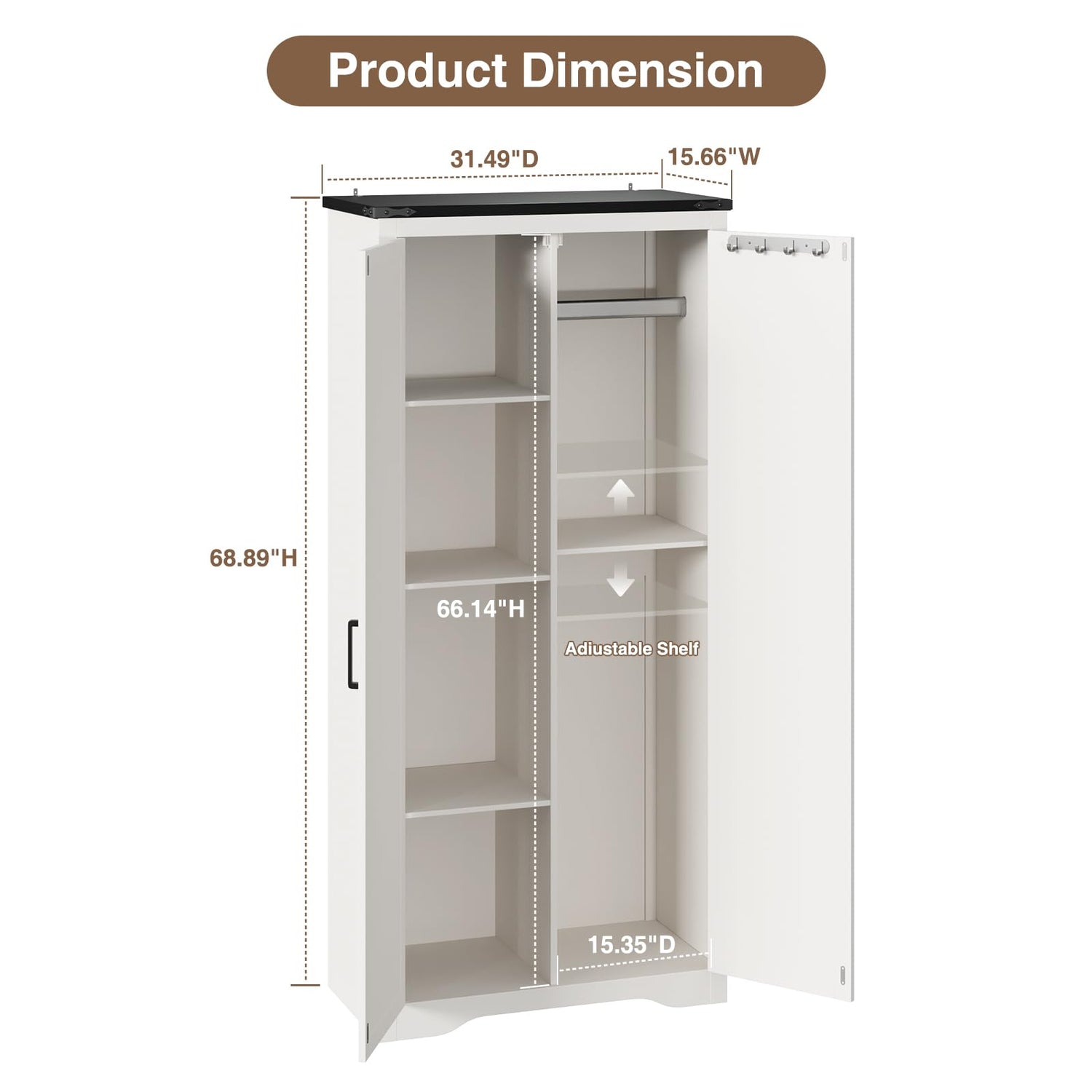 - [Used in Multiple Scenarios] This tall freestanding storage cabinet has multiple built-in adjustable partitions and a huge storage capacity. The storage space can be adjusted according to actual needs. Not only can it be used to store kitchen utensils or hide bathroom toiletries, but even garage cleaning tools can be completely stored. This wooden storage cabinet is a quality choice for your ideal furniture.
