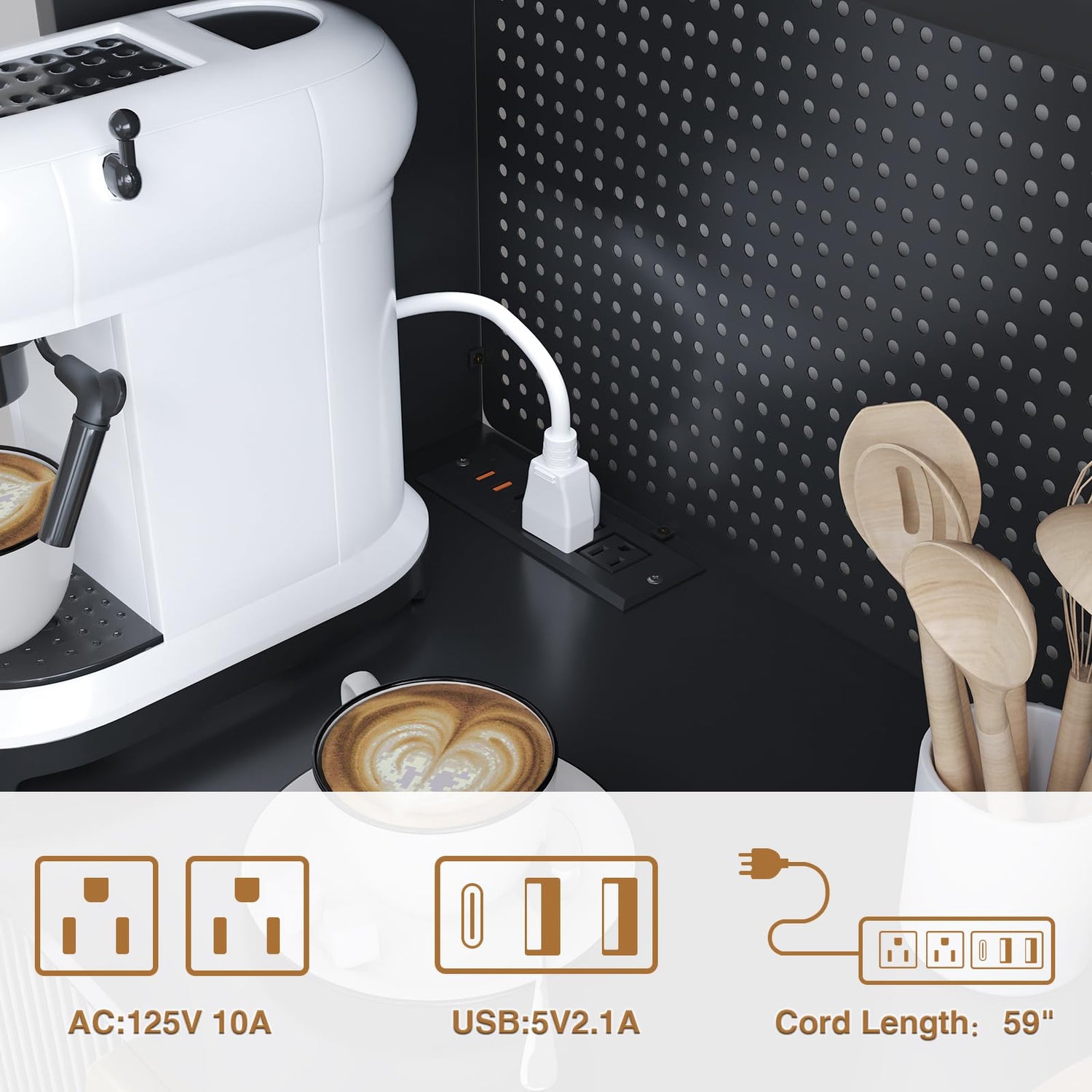 - Enhanced Power Integration: This natural wood kitchen pantry cabinet is equipped with 2 outlets, 2 USB ports, and a USB-C port, providing comprehensive power options for small kitchen appliances and electronic devices, keeping everything conveniently charged and ready for use