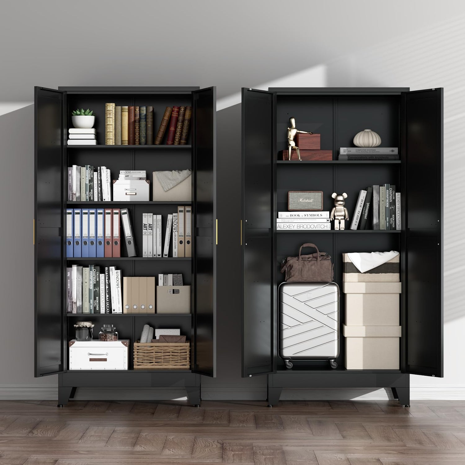 - Storage Space: Once assembled, this storage cabinet boasts dimensions of 70.87 inches x 31.5 inches x 15.75 inches. with 5 tiers of space and 4 fully adjustable shelves, creating a versatile storage solution that can easily accommodate any item you need to store. It's the perfect fit for all your storage needs.
