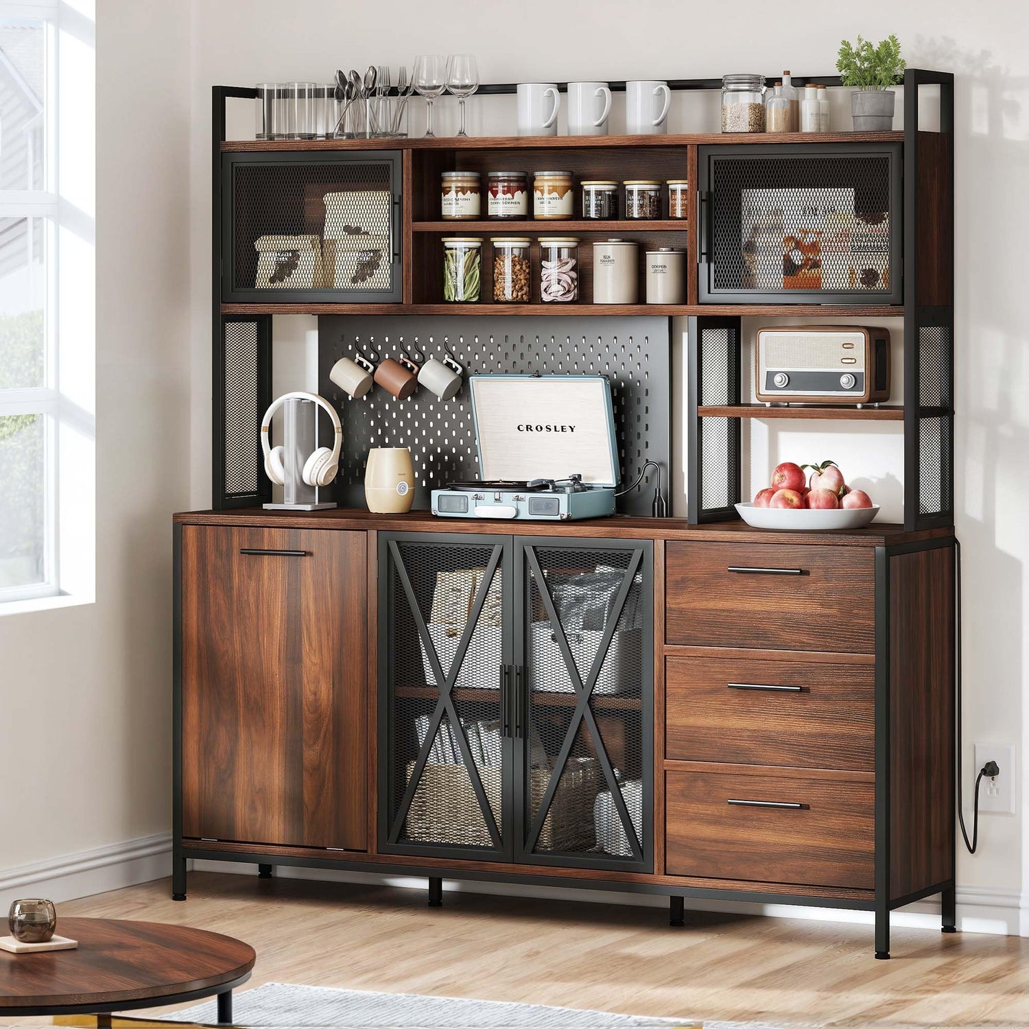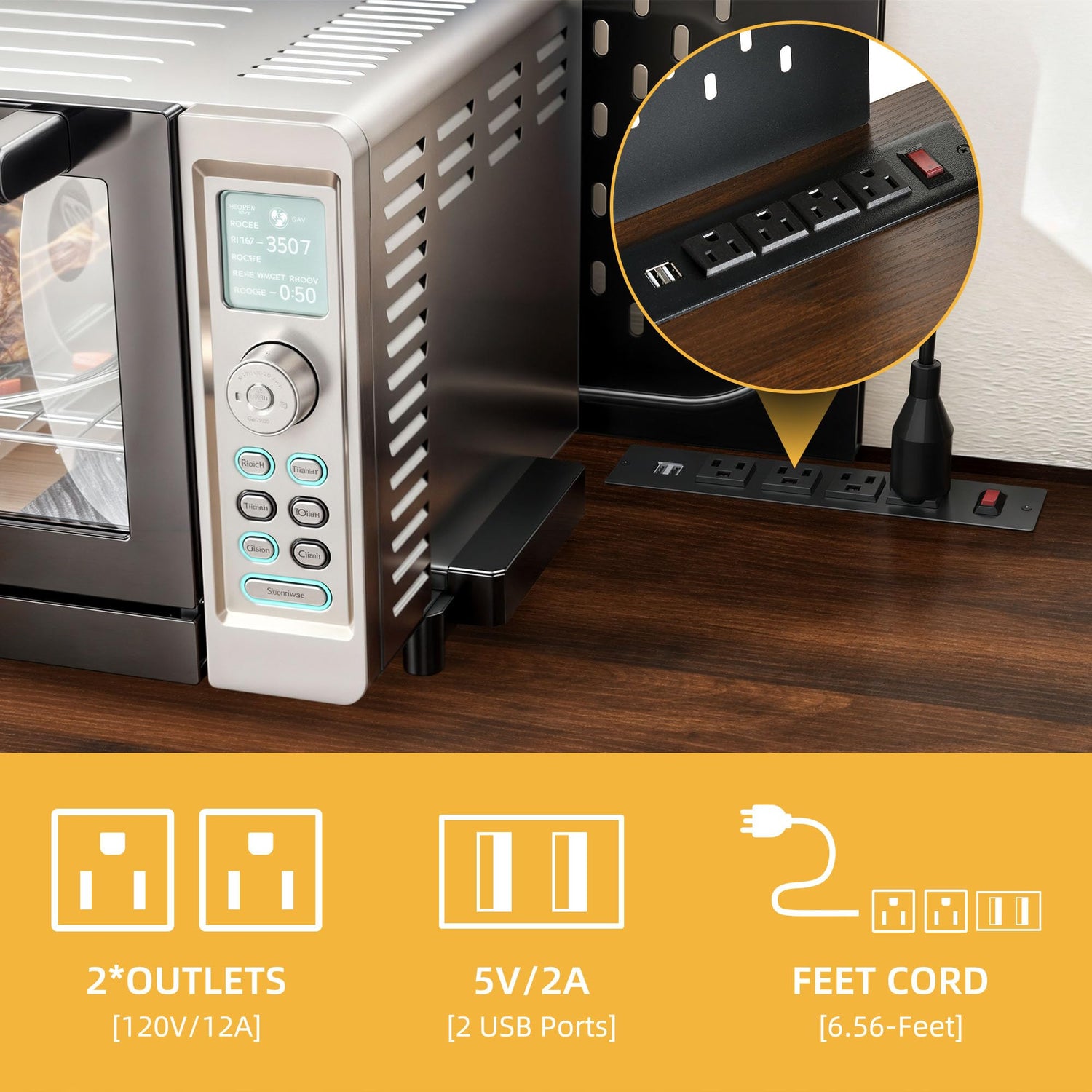 - Power up with ease: Featuring a socket with 2 USB and 2 AC outlets, these pantry cabinets with hutch keep your kitchen charged and ready. No more trekking across the kitchen for power, it's right where you need it