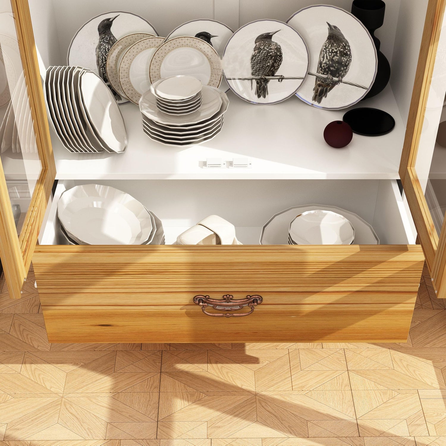 With its generous storage capacity, this cabinet is equipped with 3-tier shelves and a convenient drawer, providing ample space for books, toys, wines, bottles, and other treasures. The enclosed design keeps your collections dust-free while adding a touch of sophistication to your surroundings.
