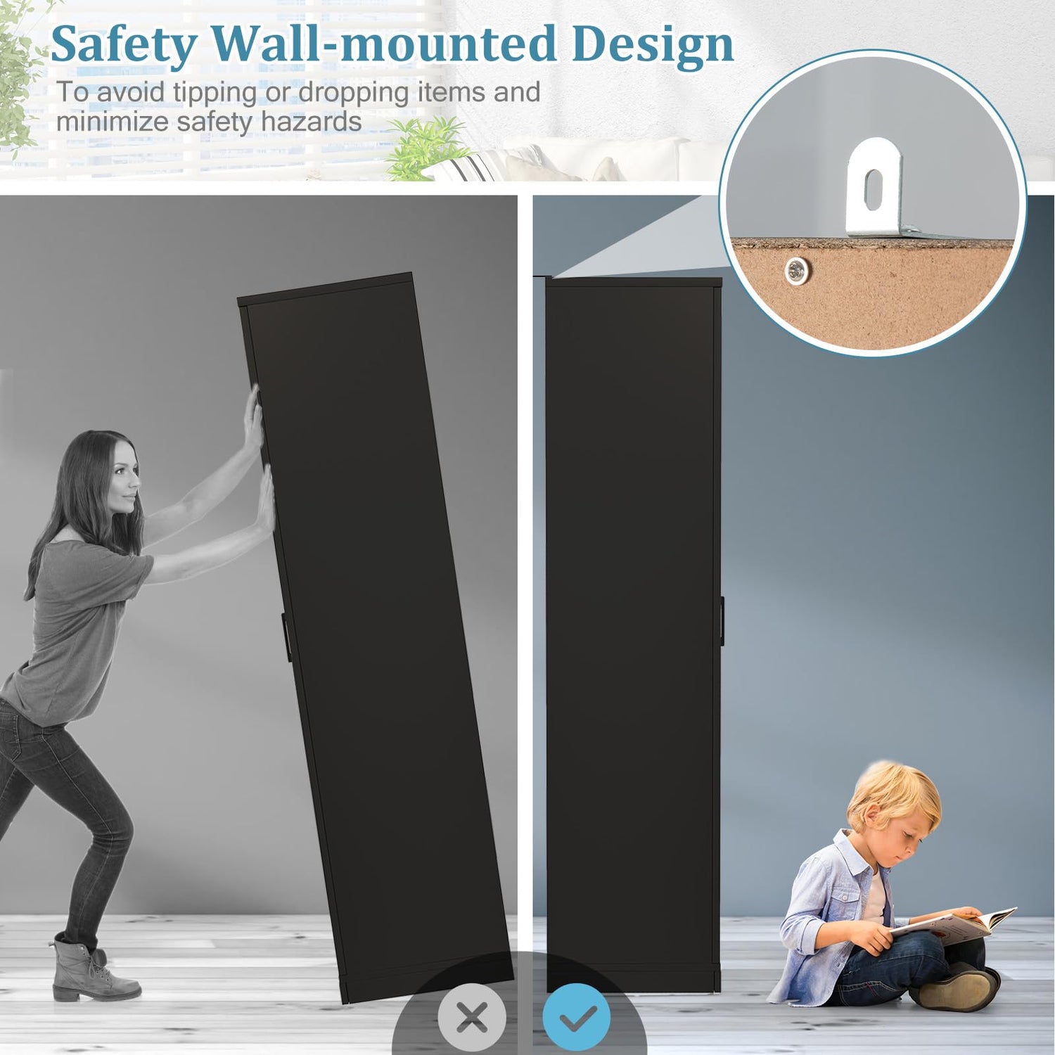 - 【Safe Wall-mounting Accessories】: You might have some doubts about the stability of the product, which is up to 70 inches tall. Allowing for that, we especially equip the tall cabinet with anti-tipping wall-mounting accessories, with which you can secure the product to the wall so you don’t have to worry about your family being hurt by a falling cabinet.