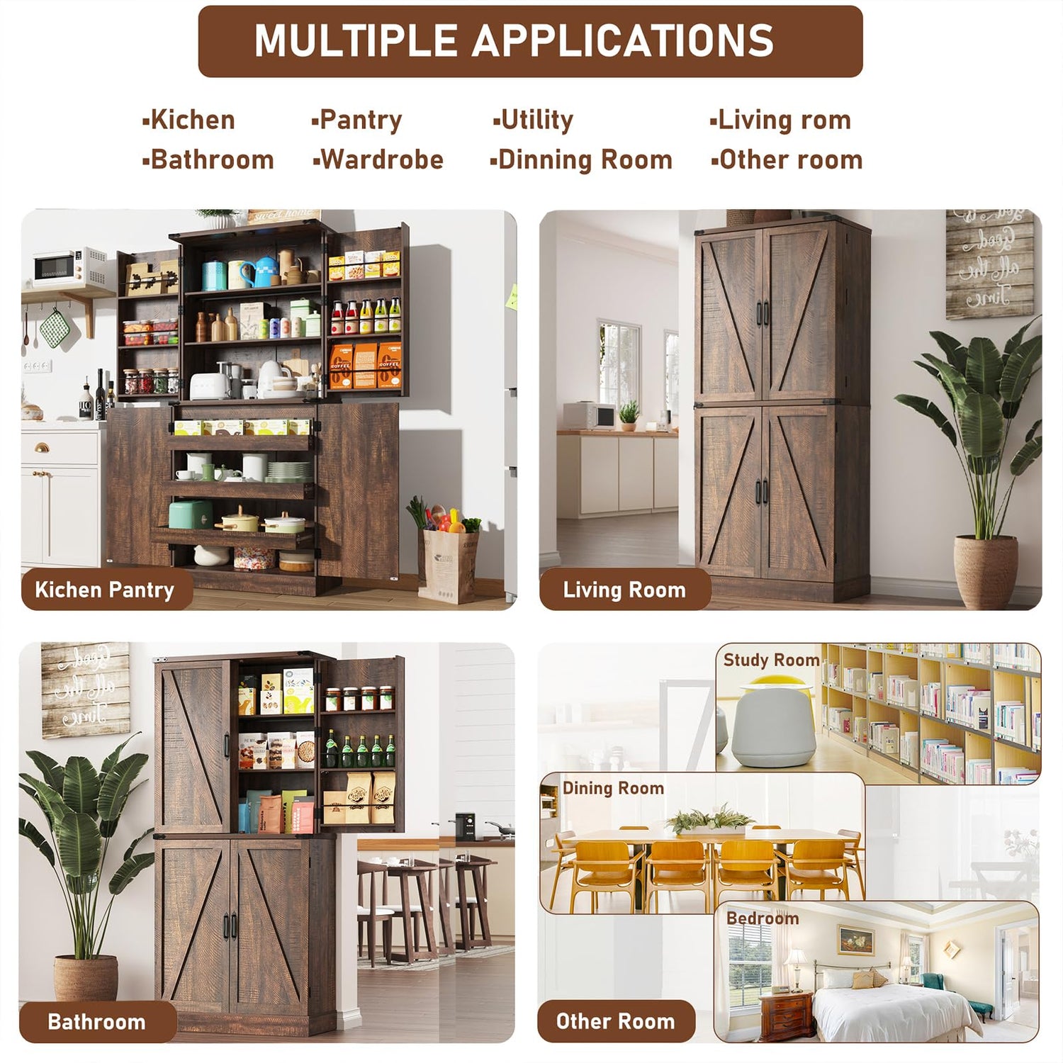 - Multi-Purpose Farmhouse Storage Cabinets:This Storage Cabinet can be used as kitchen cabinet,craft cabinet,food pantry cabinet,bathroom storage cabinet and so on, Transform your kitchen cabinets from cluttered, hard-to-reach spaces into efficient, organized storage havens, perfect for cabinets, kitchen, pantry,bathroom,living room,office,and more.It can be placed in any space in your home that needs storage to keep your home neat and tidy.