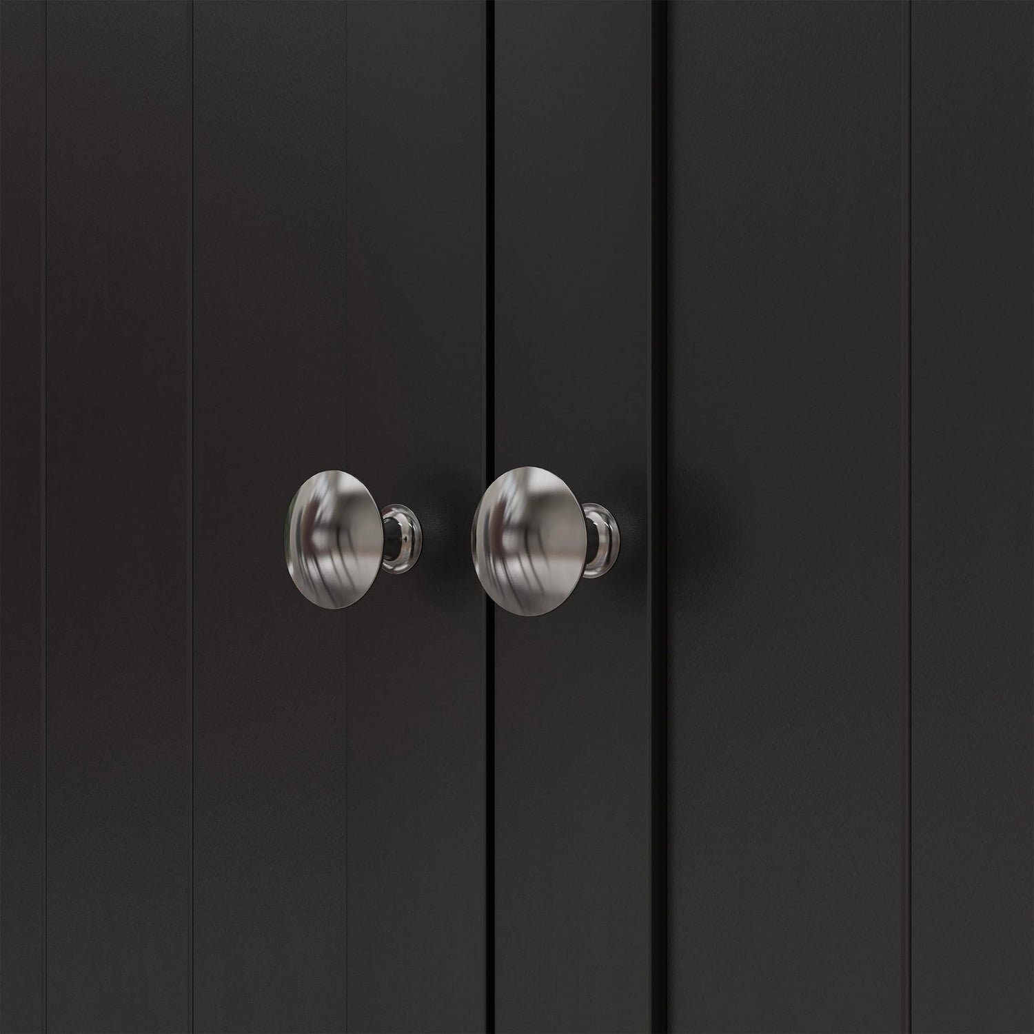 - Fits Your Inner Space: If you spend a lot of time in the kitchen, you want a beautiful piece that you enjoy looking at and that matches the theme in your home. This kitchen storage cabinet features sleek lines with compact design and silver metal hardware, great for your living room, dining room, entryway, or garage.