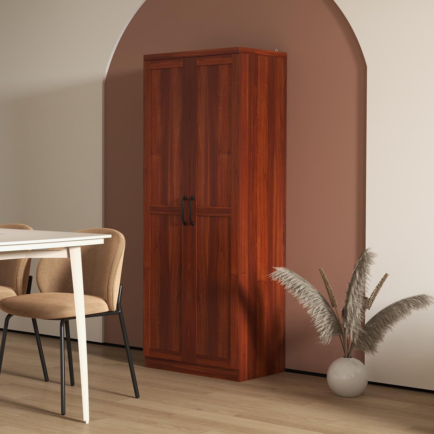 - Make a Statement: If you spend a lot of time in the kitchen, you want a beautiful piece that you enjoy looking at and matches the theme in your home. This food pantry cabinet features recessed door panels and elegant black handles, makes it a great piece for your kitchen, living room, or dining room décor.