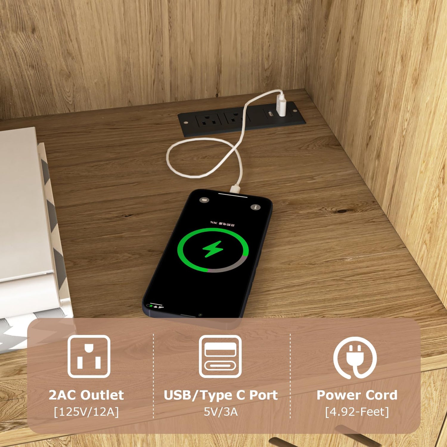 - 【SMART CHARGING HUB】- Enhance convenience with 2 AC outlets and 2 USB charging ports, allowing you to charge multiple devices simultaneously. Keep your kitchen organized and your electronics ready to use at all times.
