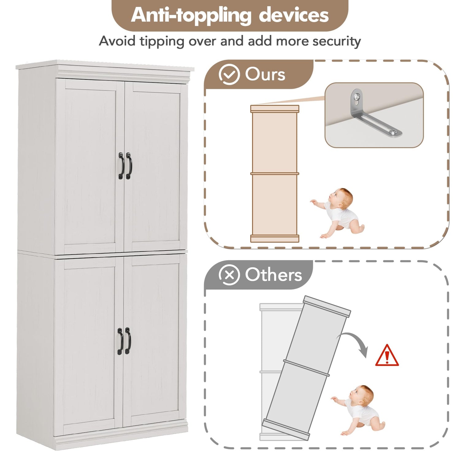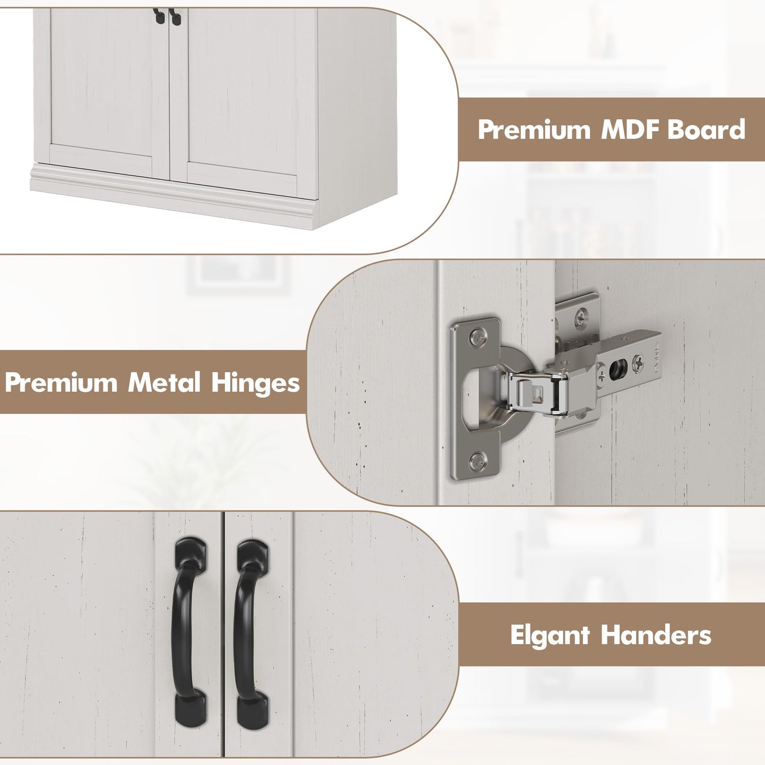 • OPTIMIZE YOUR STORAGE EXPERIENCE: Enjoy well-designed storage that offers lasting functionality. The tall pantry height is tailored for the average adult's comfort. Oversized coated metal handles provide a comfortable grip and ensure durability. High-quality hinges allow for smooth door operation, perfectly blending style and practicality for a seamless storage experience
