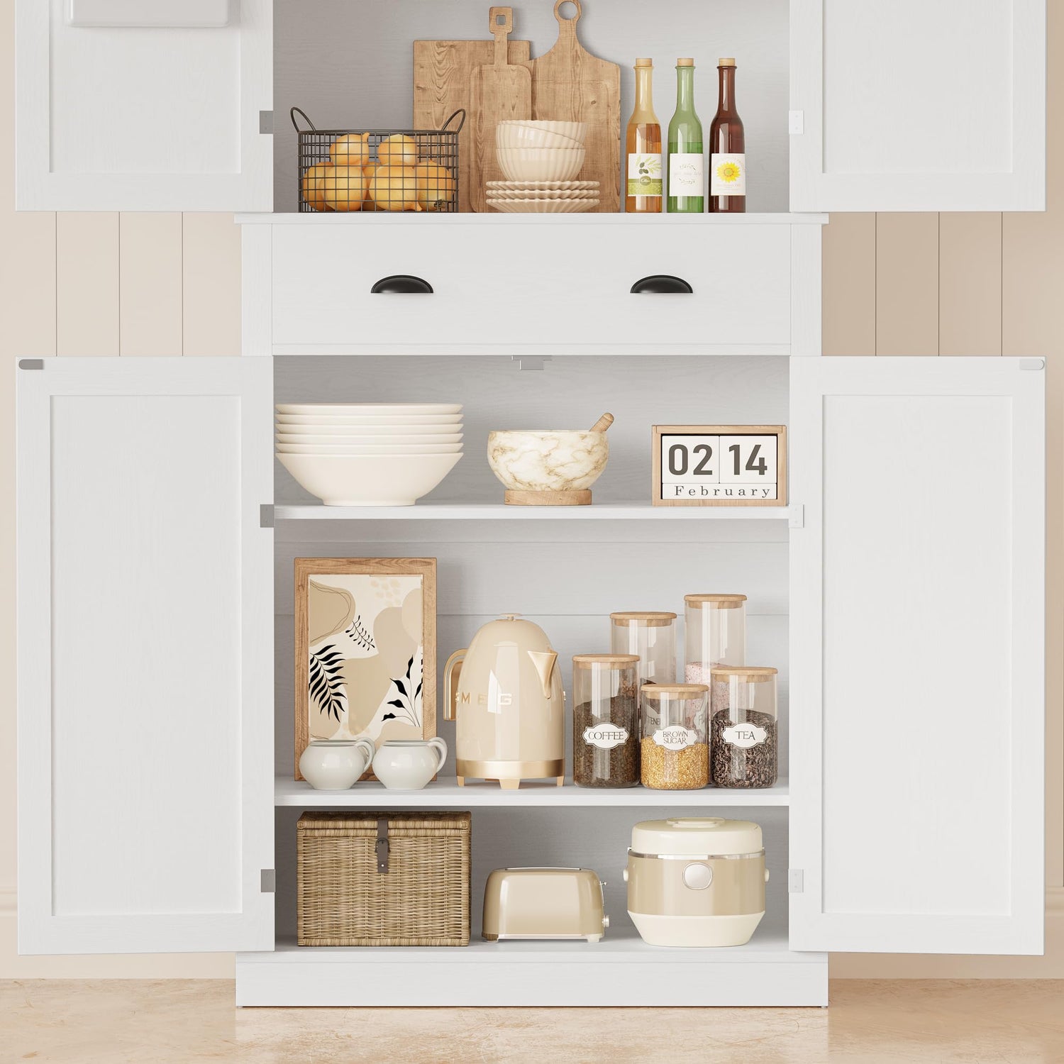 - Easy to Assemble: The instruction is very detailed and easy to read, and even inexperienced people can quickly complete the installation. Pantry cabinet in one box, no worry about waiting for the second box