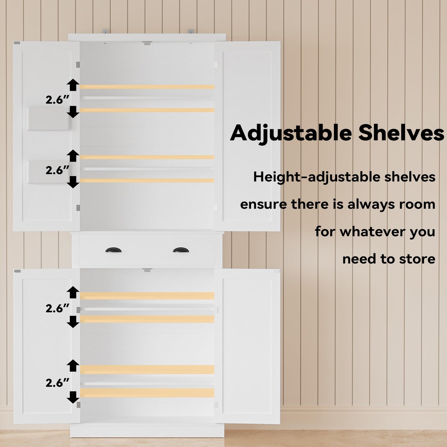 - Durable and Sturdy: Made of high-quality MDF board to Ensure Resistant and Durability, and wall attachments for added stability, this tall storage cabinet is built for daily use
