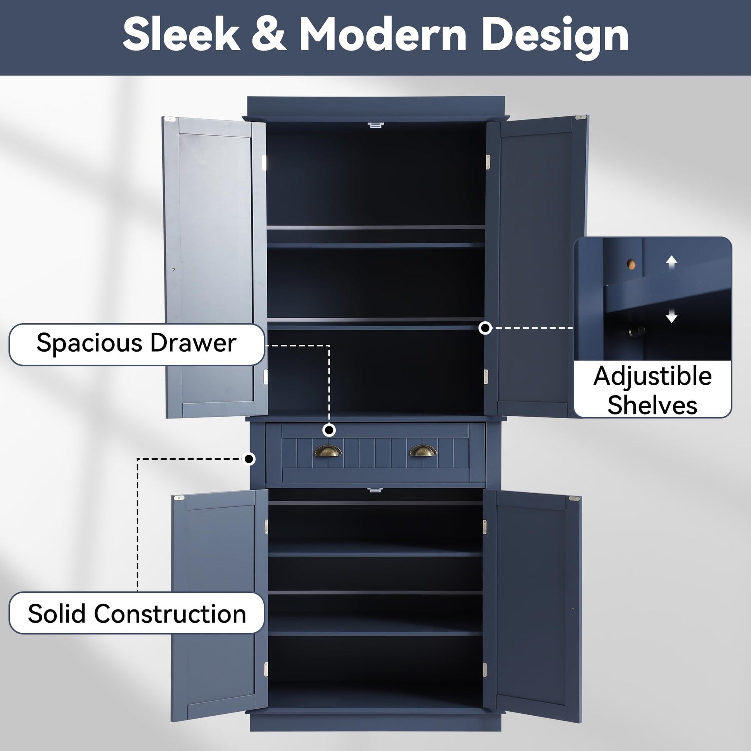 - Storage Cabinet for Kitchen: Our pantry cabinet adapts to variety of home design themes, ensuring a cohesive and stylish addition to any living space. The freestanding cupboard is ideal for the kitchen, dining room, bathroom, and living room