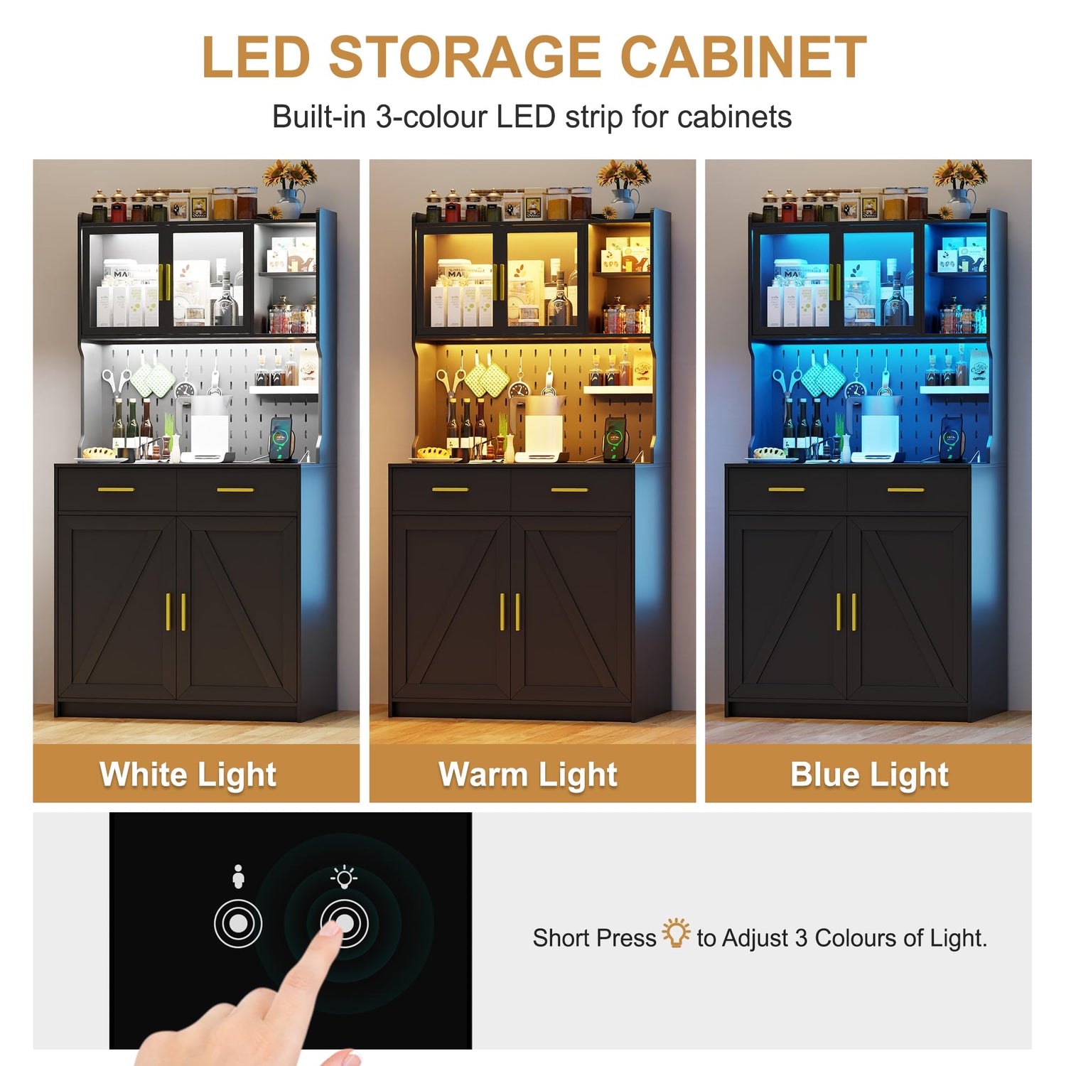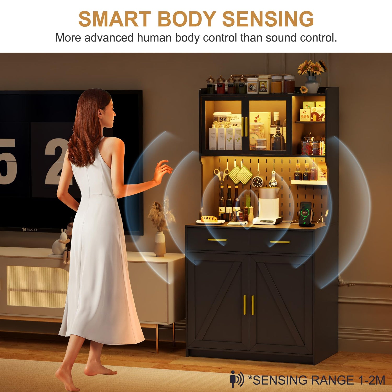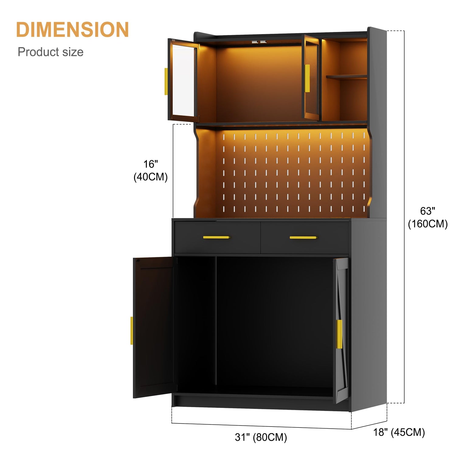 - 【Smart Charging Station】 - Upgrade your kitchen experience with this kitchen pantry equipped with a charging station, convenient for appliances like coffee machines and microwaves, greatly simplifying your cooking routines