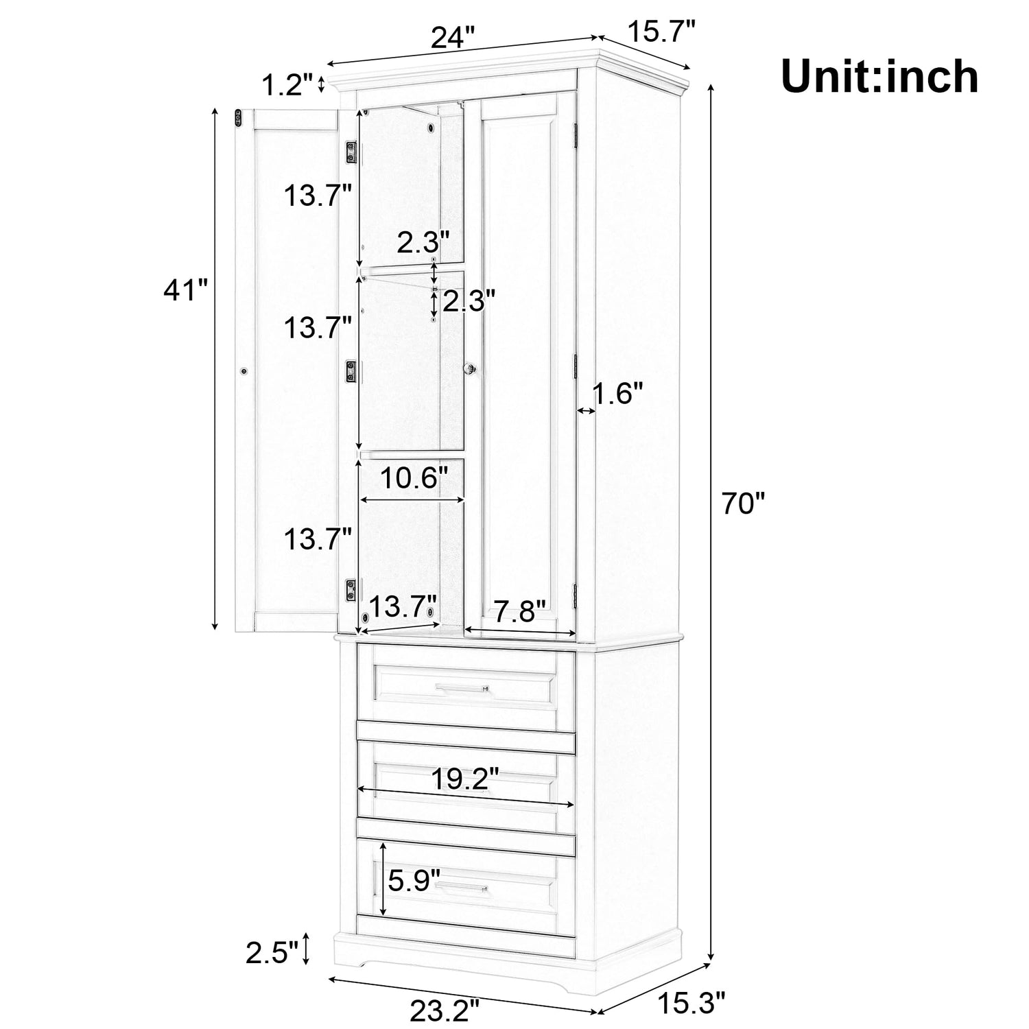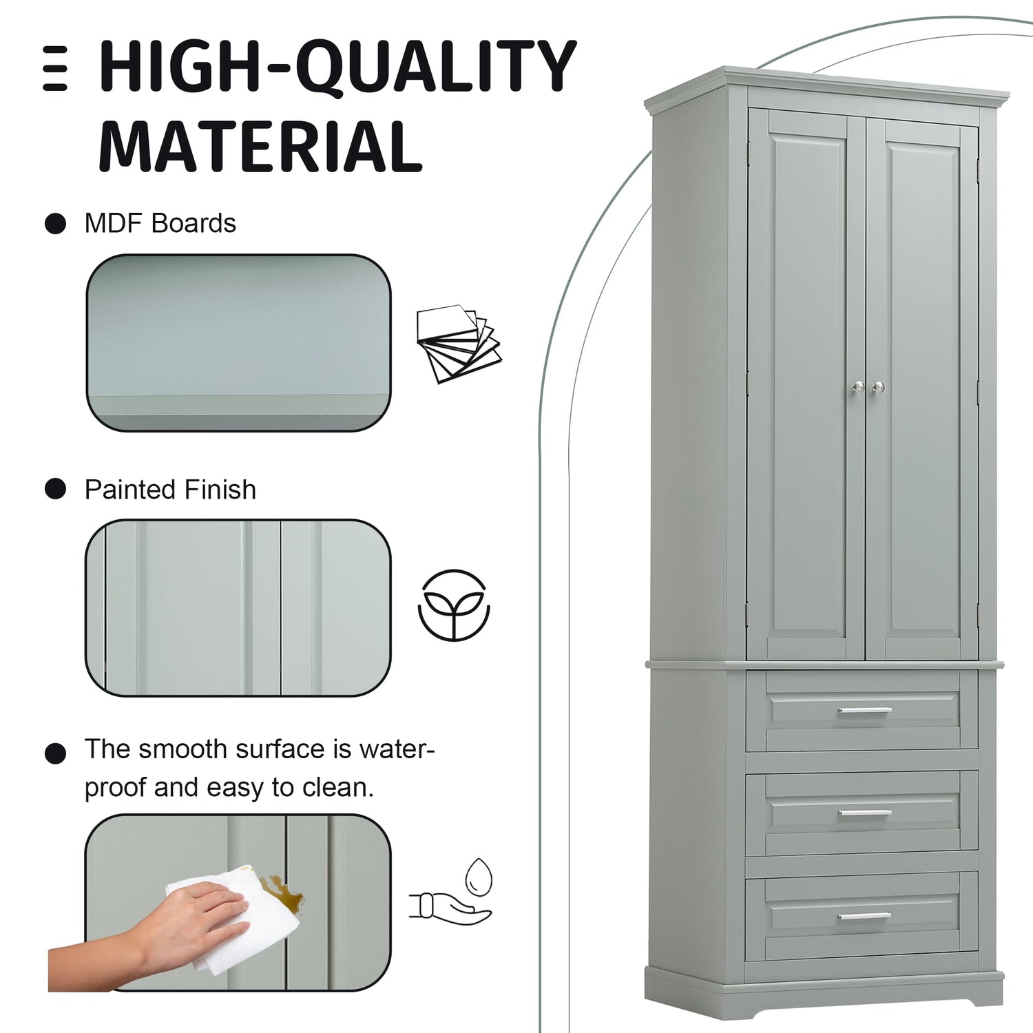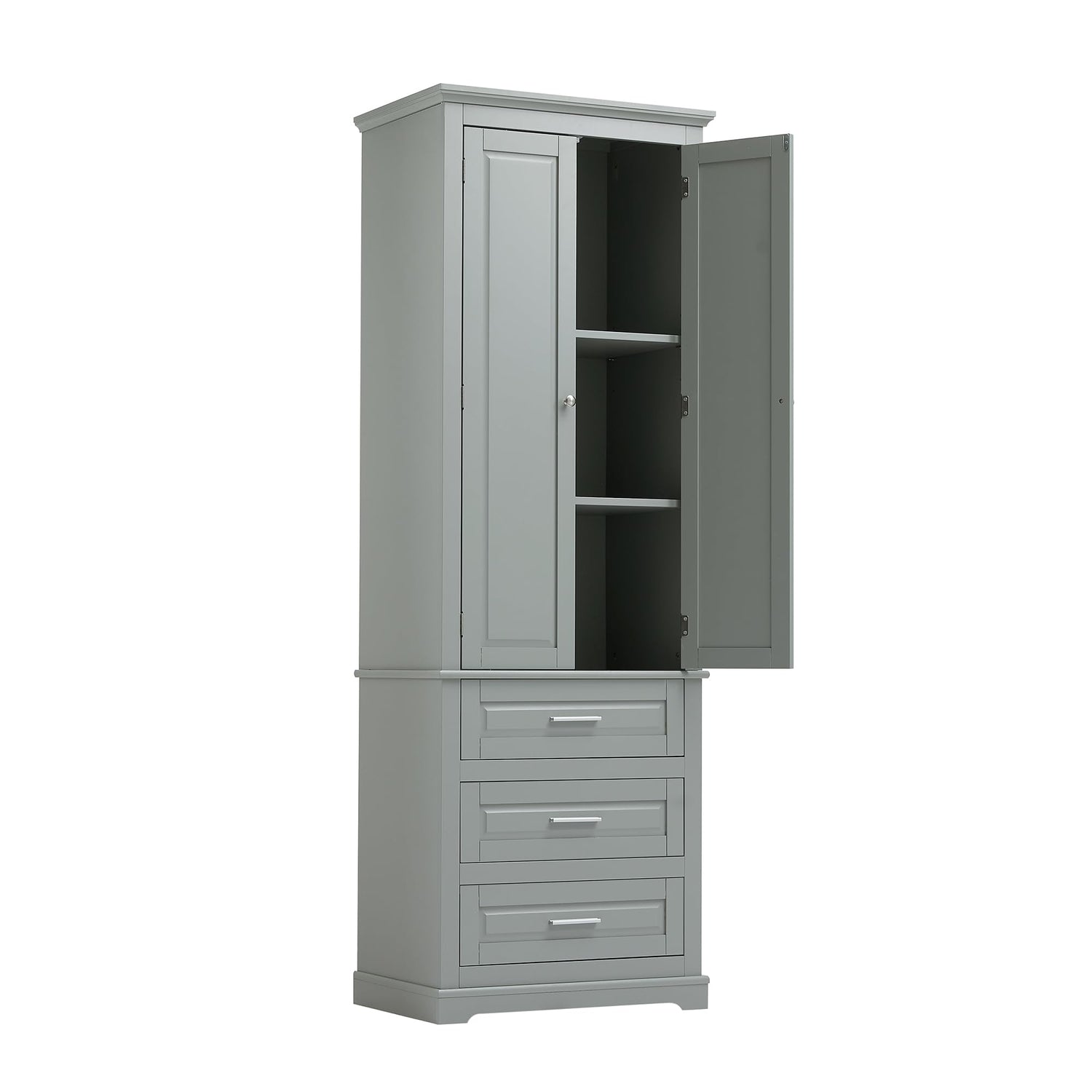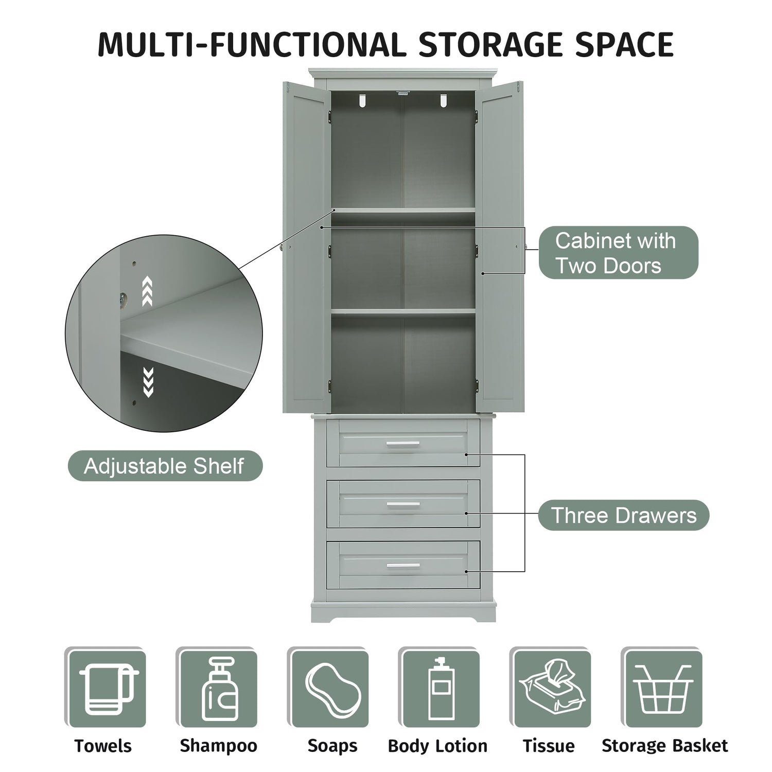 - [Multipurpose Design] The overall height of this cabinet is 70”, and it includes different storage styles: there are one enclosed cabinet and 3 big drawers. This cabinet is suitable for many home decor styles and different environment like bathroom, living room, kitchen, laundry room and so on.