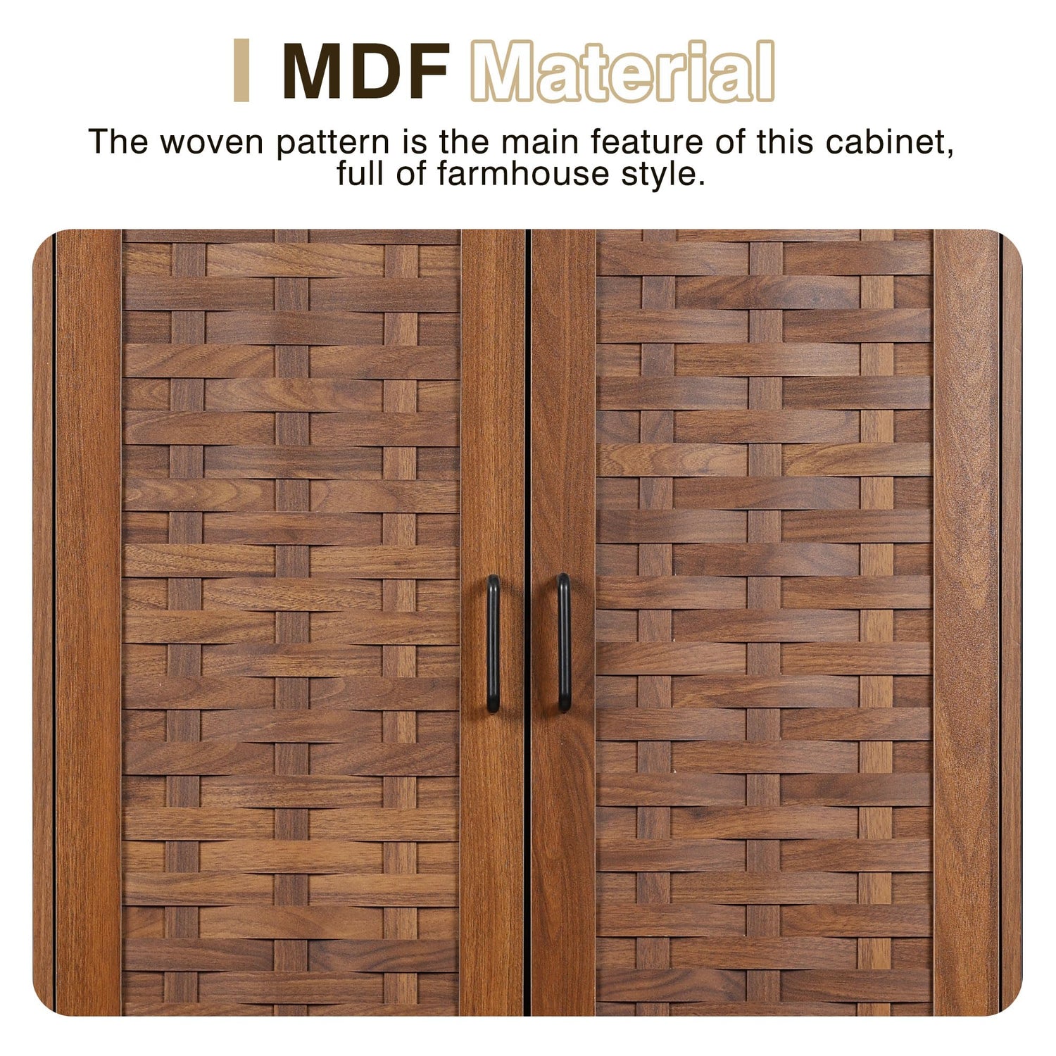 - 【Farmhouse Design】 Inspired by farmhouse and retro design idea, the freestanding cabinet is emerged with natural grain finish and door in rattan design. Adding the countryside appealing to your house.
