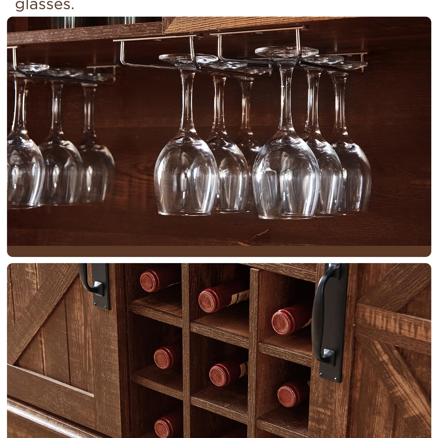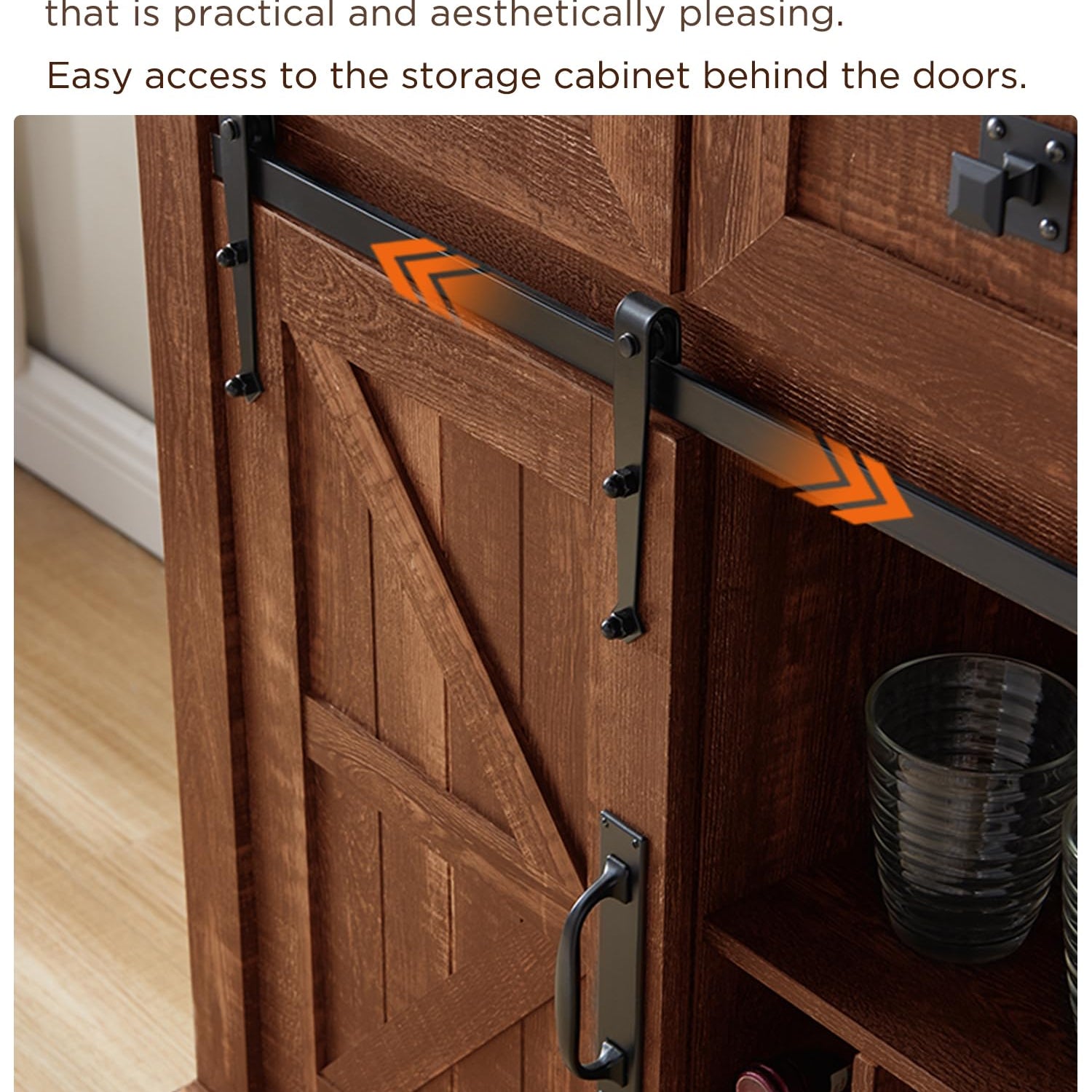 - Farmhouse Home Bar Furniture with Sliding Barn Door: OKD Rustic wine cabinet features two flexible sliding barn doors allow easy access to cabinets and space saving. The sliding door with farmhouse sign create an elegant, farmhouse ambiance in your living space. Flexibly use it as a alcohol cabinet, kitchen pantry, china cabinet, coffee bar station, microwave stand, kitchen cupboard, credenza, storage cabinet.