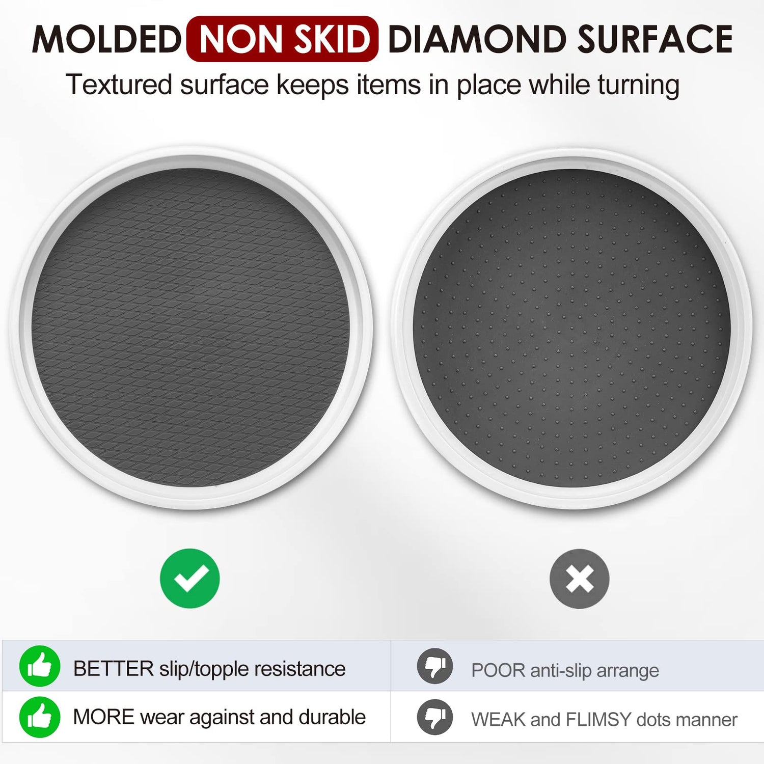 - Product Include - 4 Pack 10 Inch plastic turntable lazy susans. Diamond-shaped silicone non-slip surface with anti-slip base feet.