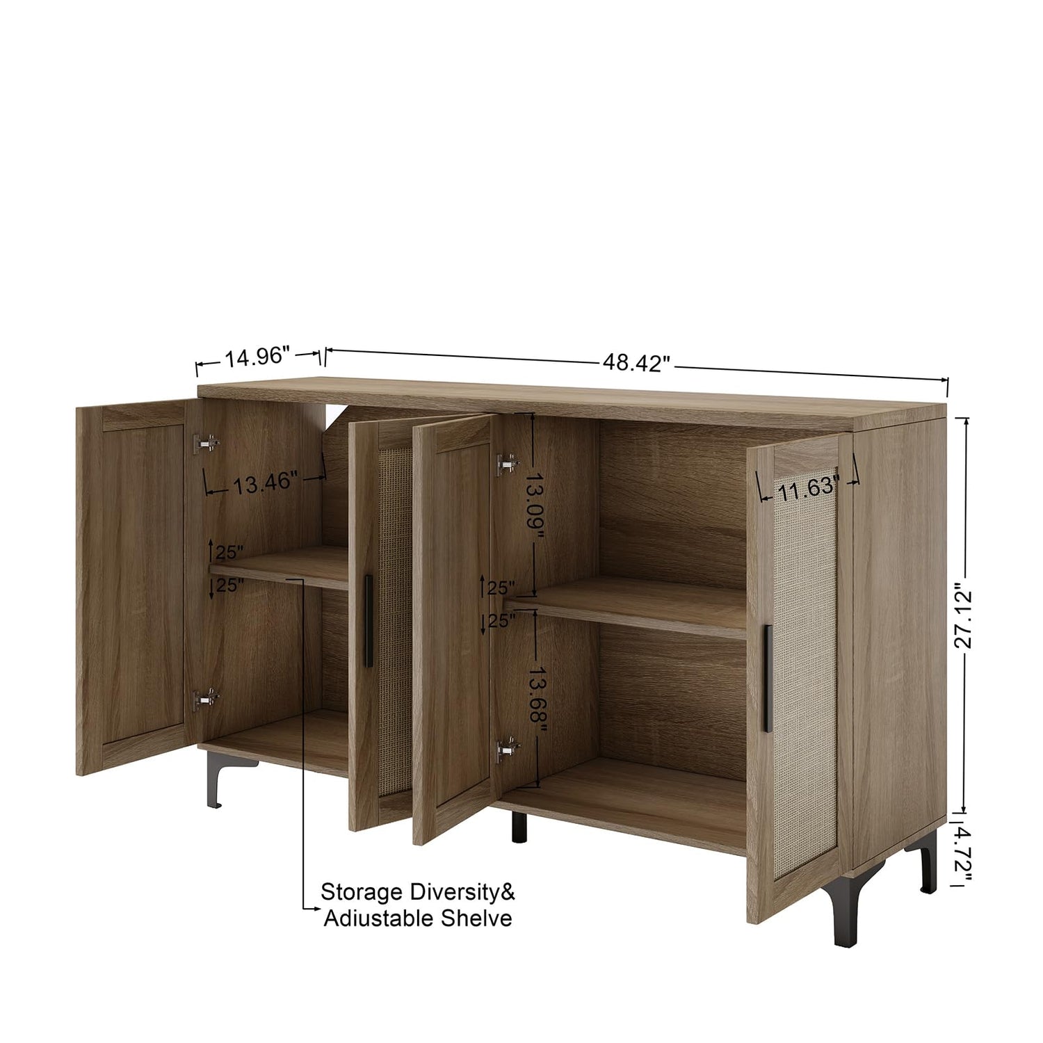 Sideboard Buffet Cabinet with Storage, Rattan Kitchen Storage Cabinet with Doors and Adjustable Shelves, Coffee Bar Cabinet, Entryway Cabinet, Rattan Sideboard Console Table for Dining Room, Natural