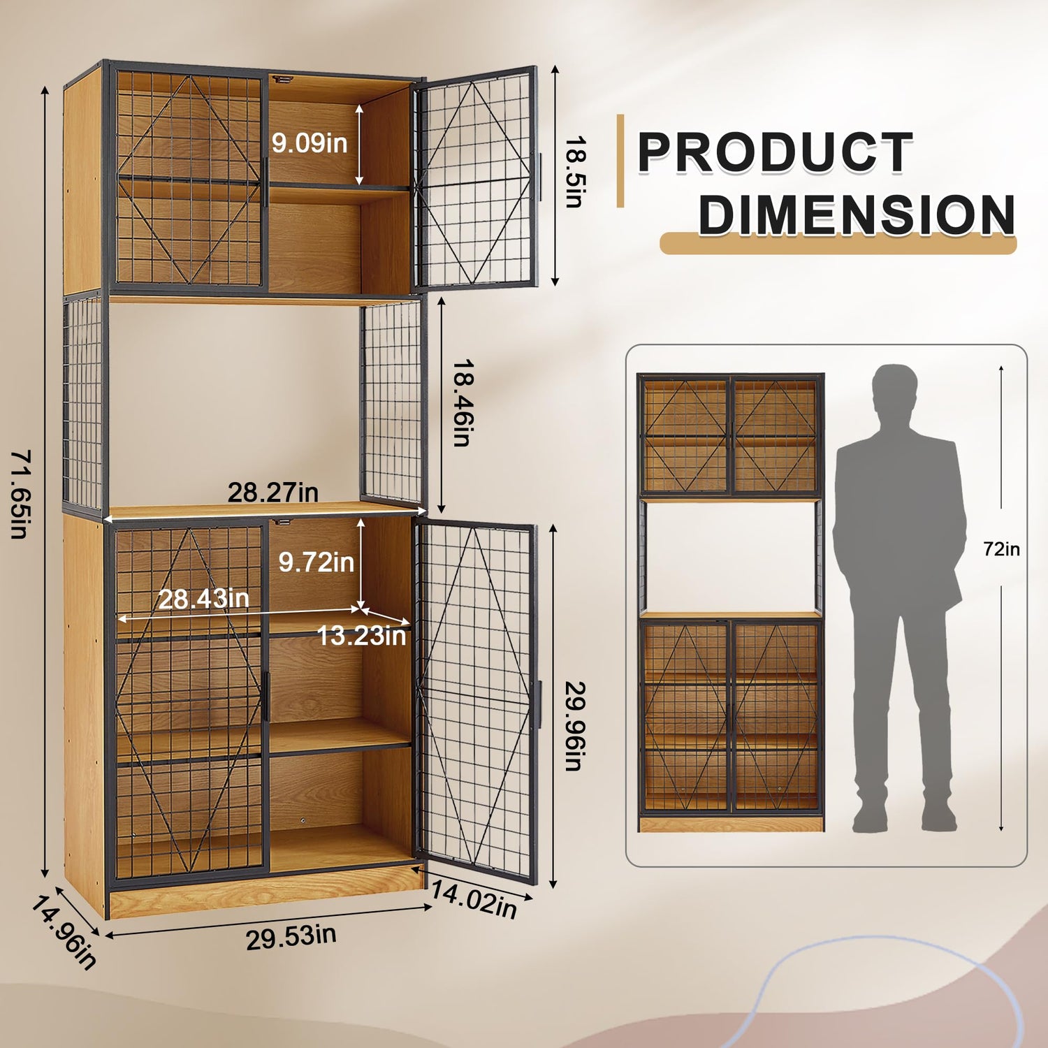 - Sleek Industrial Elegance: Crafted with a seamless union of oak and striking black tones, accentuated by skillfully integrated metal embellishments and clean, sophisticated lines, kitchen pantry storage cabinet perfectly embodies the essence of the industrial design trend. Infusing a unique and captivating character into your living space.