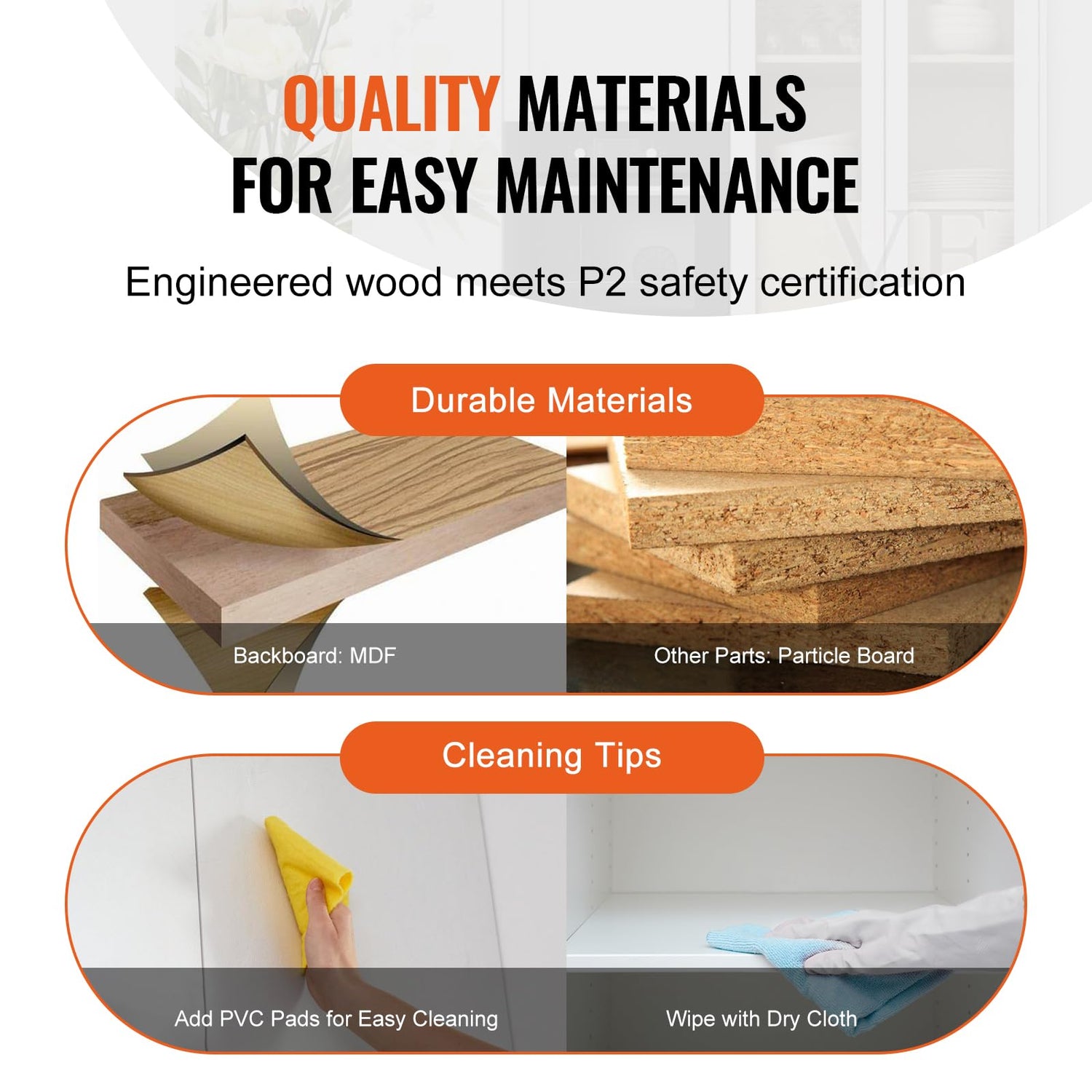 - Easy Maintenance and Assembly: Our storage cabinet cupboard is easy to clean and maintain. Simply wipe it with a soft, dry cloth—avoid using abrasive cleansers or rough pads, as well as water or other liquid cleaners. Plus, we've got you covered with all the necessary accessories and clear instructions.