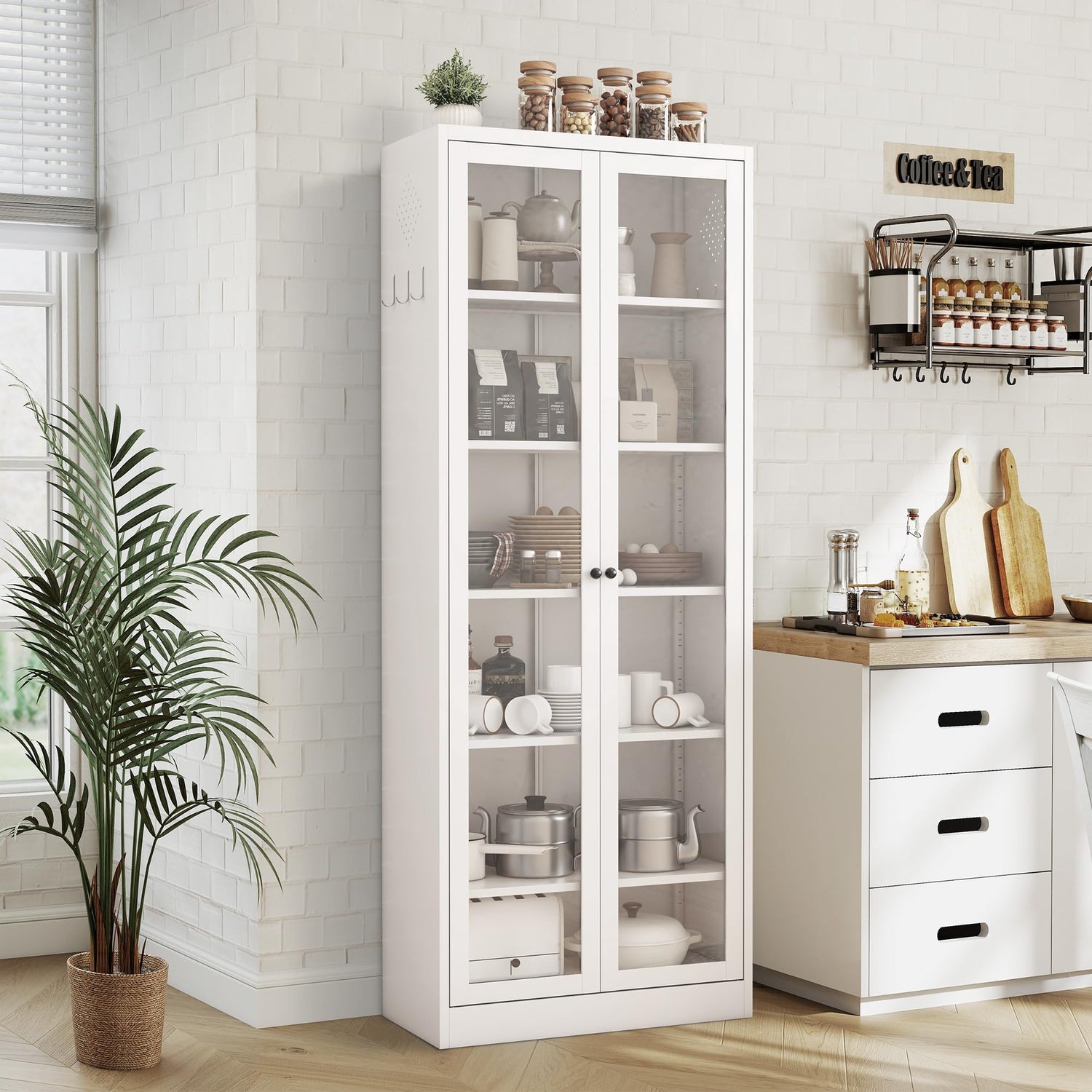 VIYET 72" Tall Kitchen Pantry Cabinet,White Metal Pantry Cabinet with 2 Doors & 5 Adjustable Shelves,Utility Storage Cabinet Rust-Resistant for Living Room,Dining Room,Bathroom,Garage,Basement