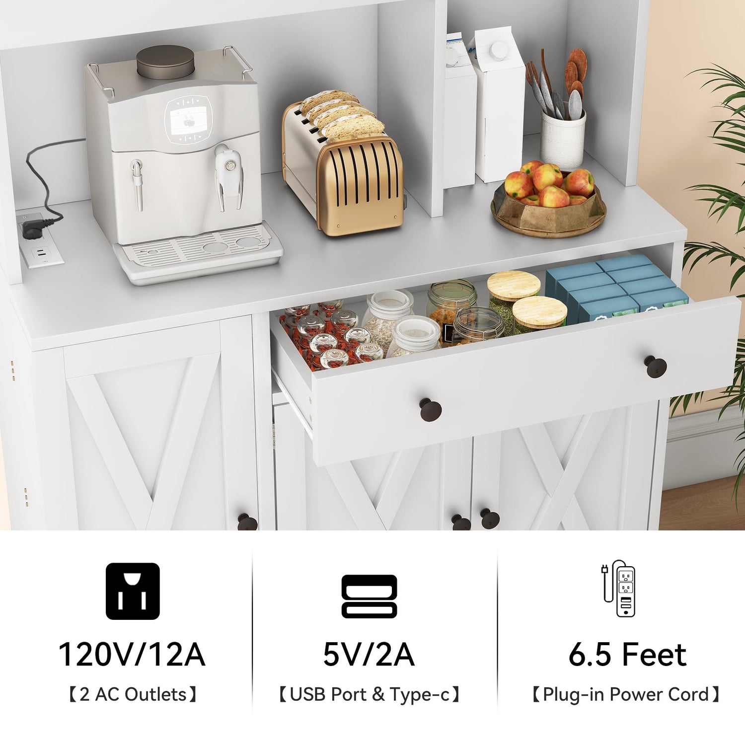 • Built-In Power Convenience: The kitchen cabinet features a built-in power outlet, ideal for powering small appliances like coffee makers, ice machines, and microwaves, adding practicality to your kitchen setup