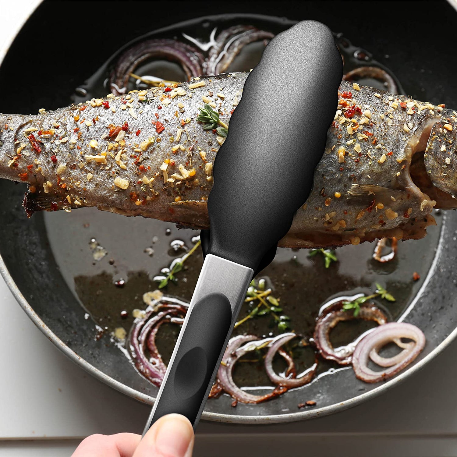 2 Pack Black Kitchen Tongs, Premium Silicone BPA Free Non-Stick Stainless Steel BBQ Cooking Grilling Locking Food Tongs, 9-Inch & 12-Inch