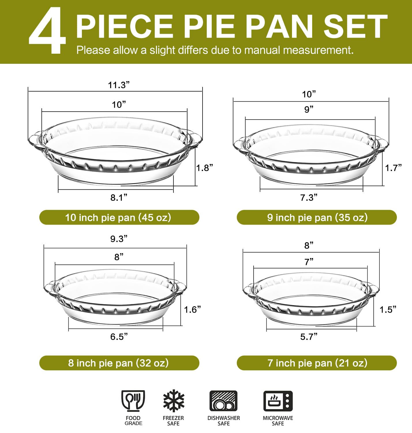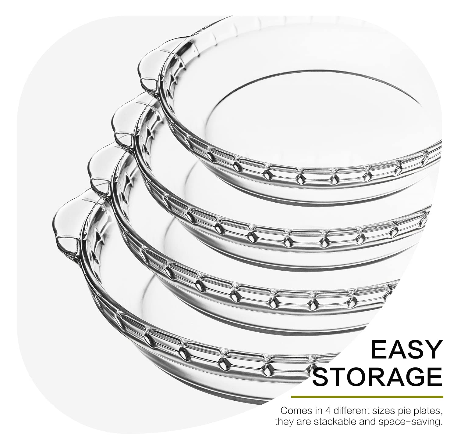 4 Packs Glass Pie Plates, MCIRCO Deep Pie Pans Set (7"/8"/9"/10"), Pie Baking Dishes with Handles for Baking and Serving, Clear