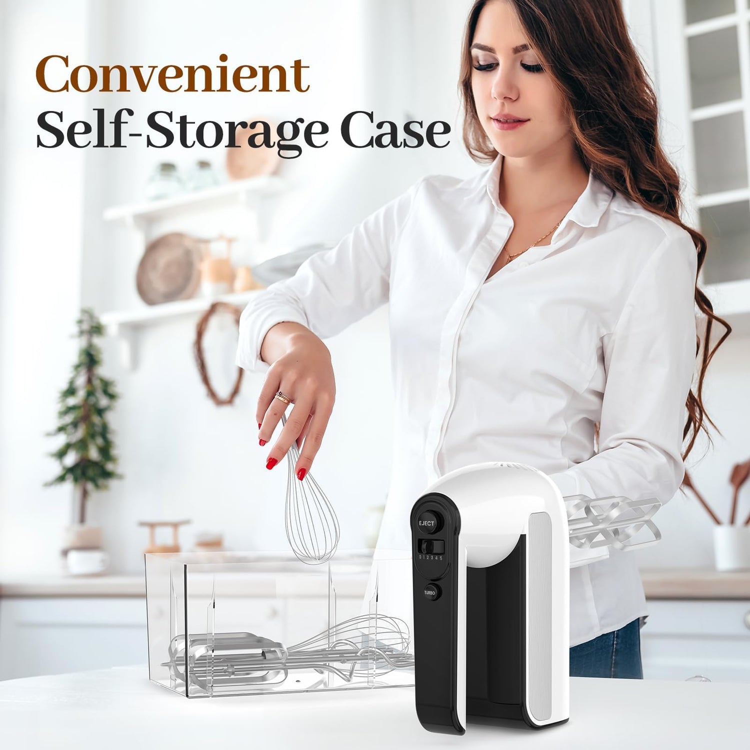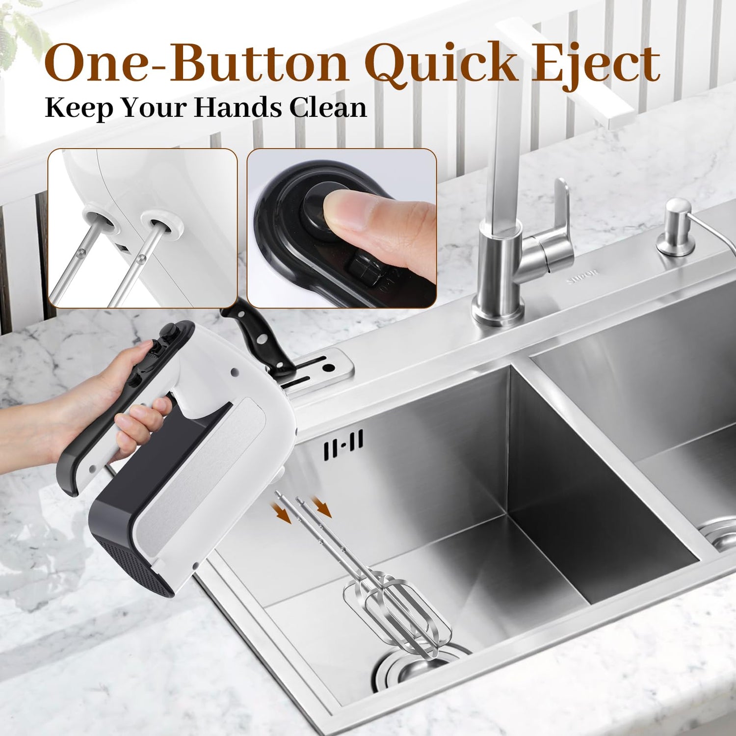 - ใ๐๐๐ฌ๐ข๐ฅ๐ฒ ๐๐๐ฅ๐๐๐ฌ๐ ๐๐๐๐๐ฌ๐ฌ๐จ๐ซ๐ข๐๐ฌใThe electric hand mixer comes with 2 traditional beaters, 2 dough hooks and 2 whisks, The eject button can quickly remove any of the included accessories from the hand mixer with the single-handed press of the button and keep your hands clean