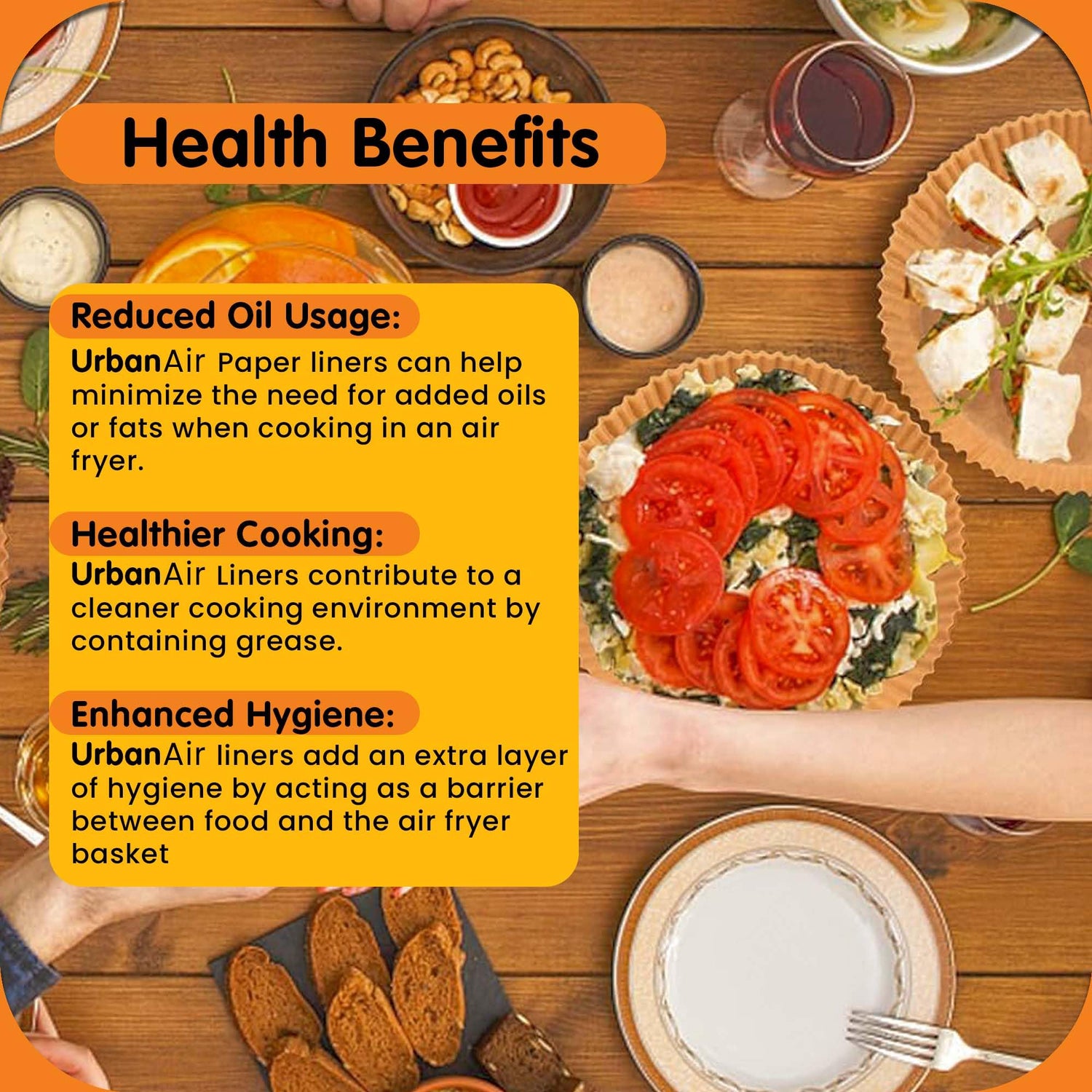 - 5. Time-Saving Versatile Convenience Companion: Enjoy the convenience of disposable liners, eliminating the need for scrubbing and soaking after each use. Suitable for a wide range of air-frying recipes, from crispy fries to succulent chicken, enhancing your air-frying experience. UrbanAir bleach-free parchment paper liners are suitable for a wide range of cooking applications, including air frying, baking, roasting, and reheating. Elevate your culinary experience with the convenience and reliability of these versatile liners.