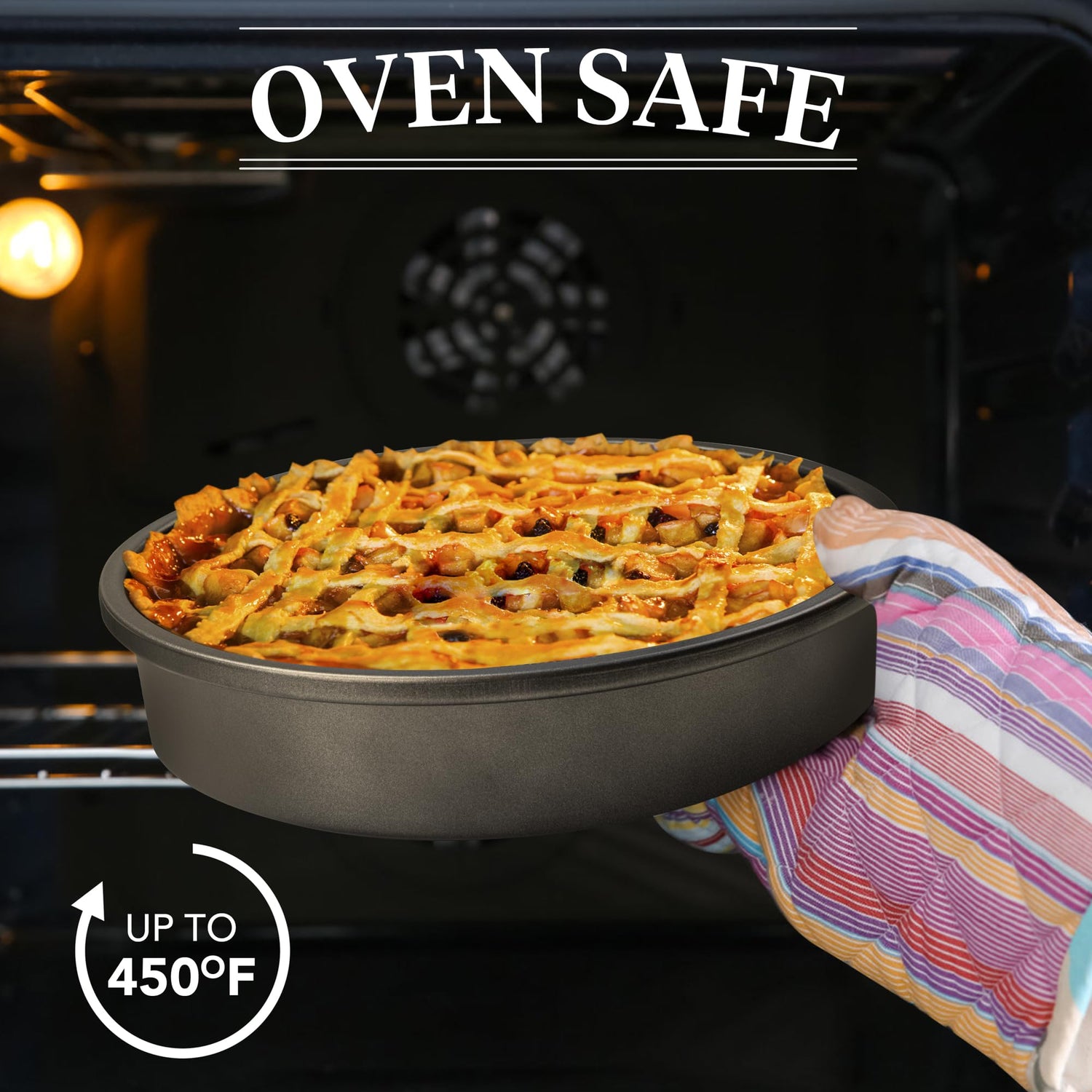 - PAN DIMENSIONS - 9 x 9 in. (23 x 23 cm) and 2.2” (5.6 cm) deep. Hand wash recommended. For best results, wash in warm, soapy water before first and after each use. Set of 2.