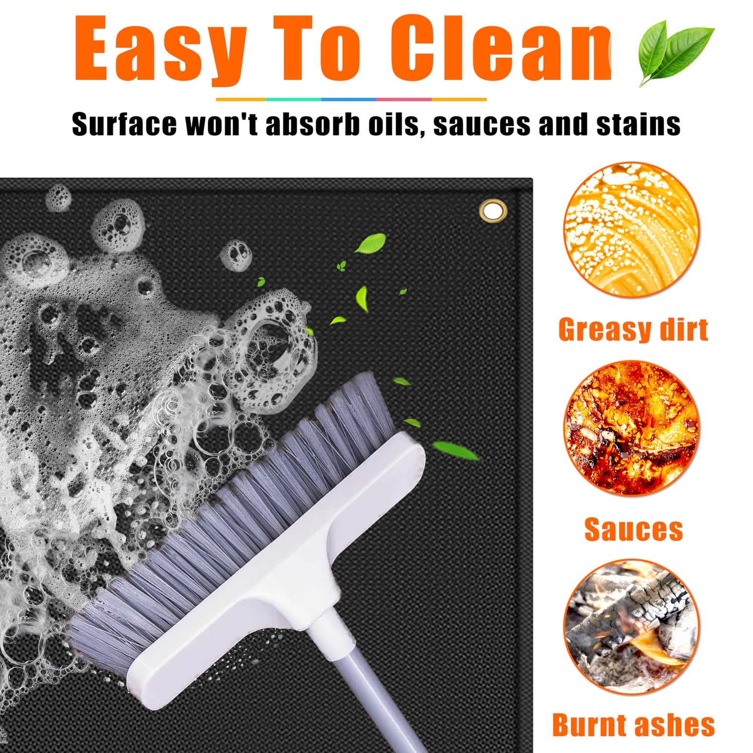- Extra Large Size: 90x48 inches grill mat, protect the area under the grill from high temperature and fire, and collect any splatter and food stains, keep the environment hygienic, reduce the burden of cleaning, and enjoy the outdoor time to the fullest.