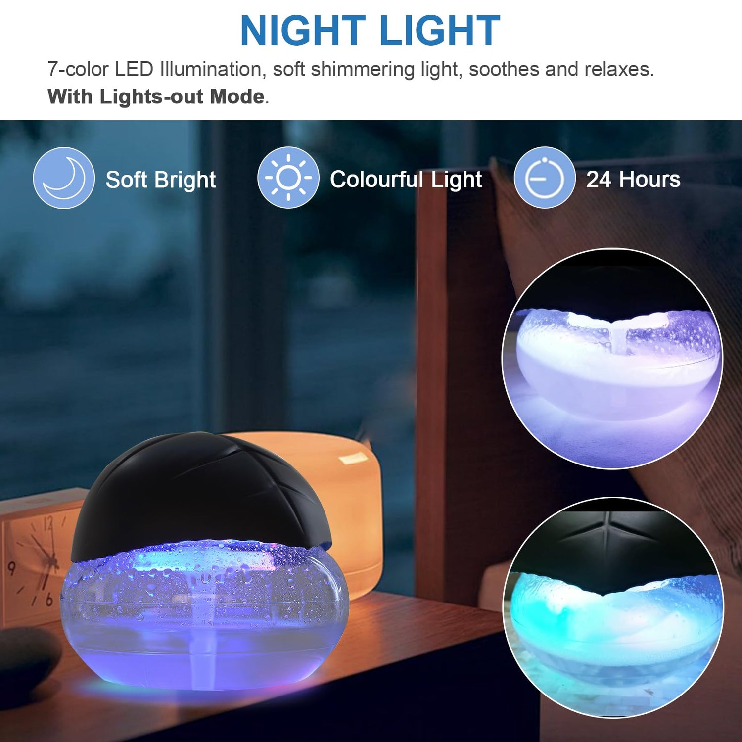 - with LED Night Light: With night light design, 7 colors changing mood lights, give you a peaceful of night.