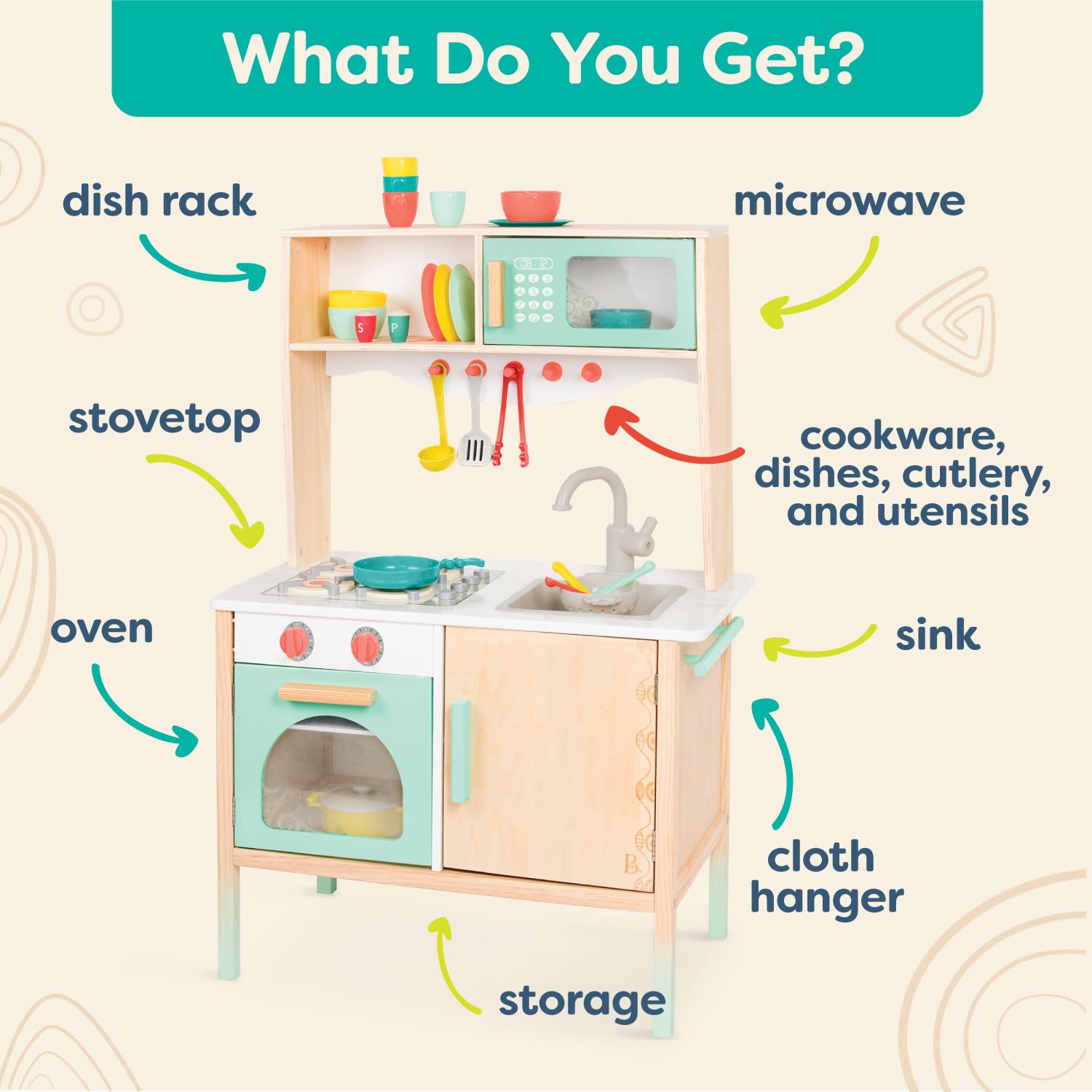 B. toys- Mini Chef Kitchenette- Pretend Play Wooden Play Kitchen – Kitchen for Kids – Kitchen Play Set & Accessories – (20+ Pcs)- 3 Years +