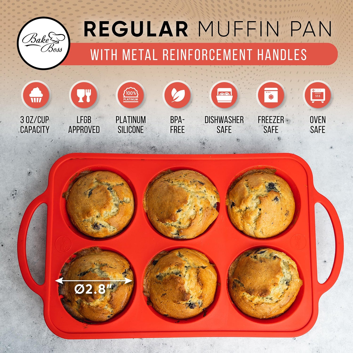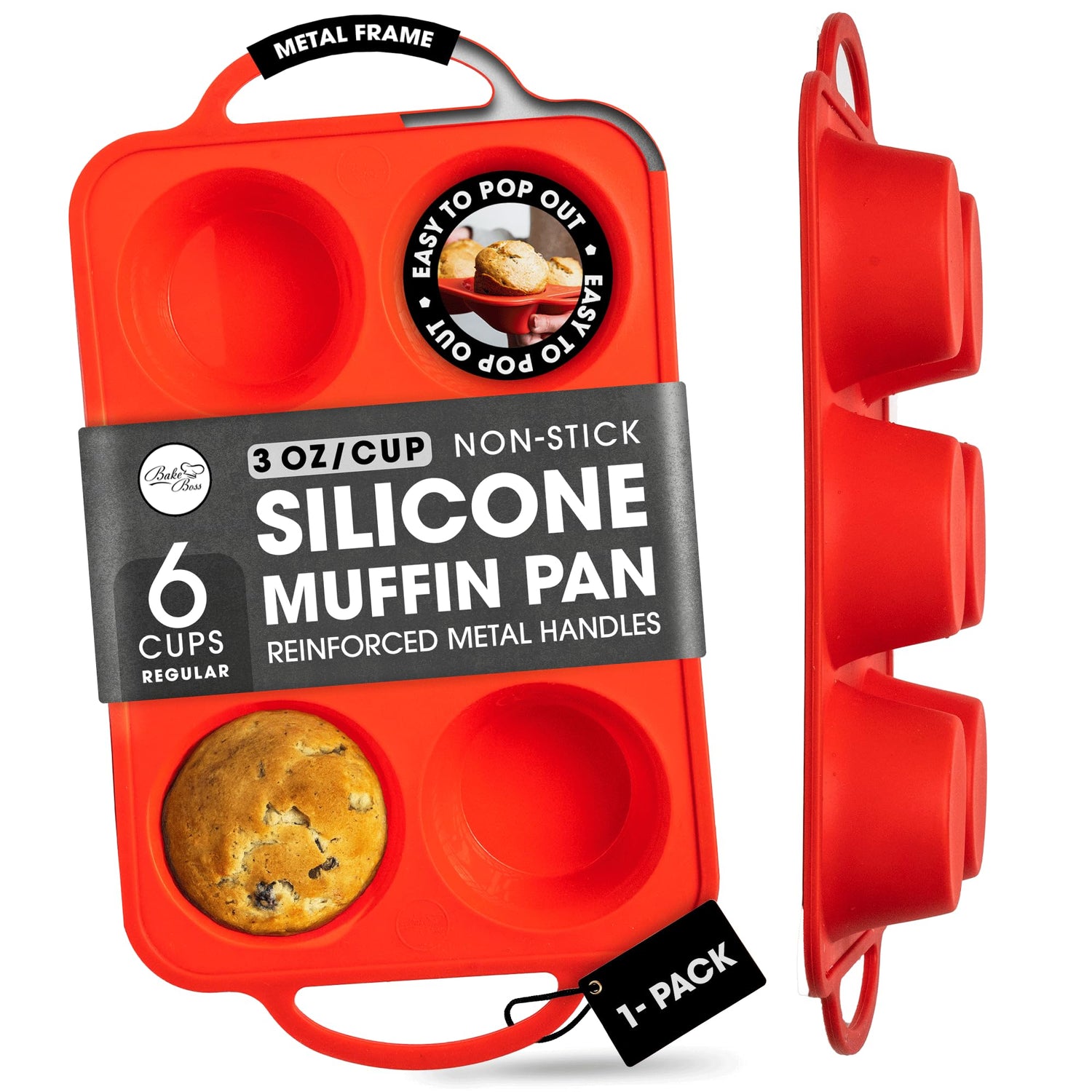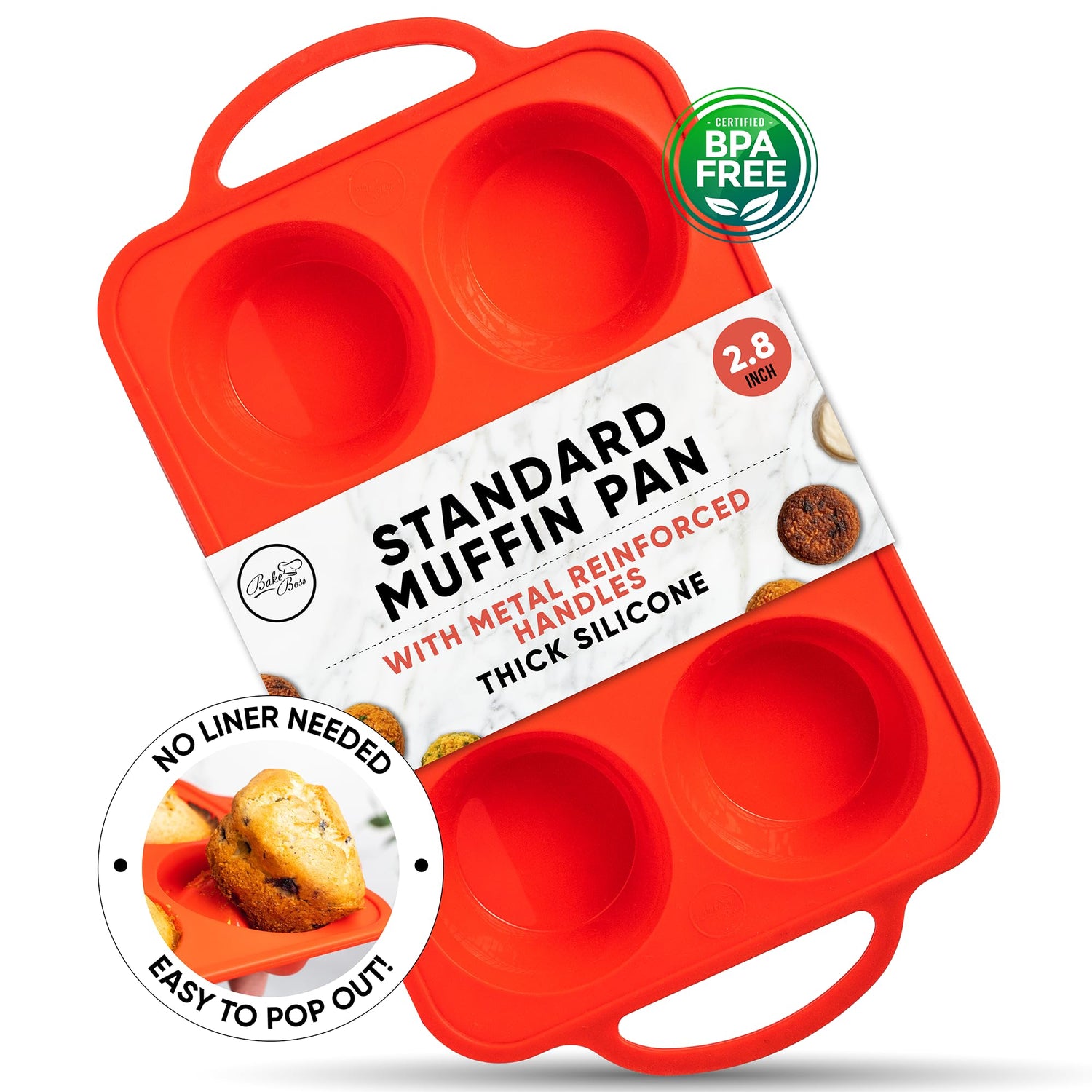 - NON-STICK FOR EASY RELEASE: Bake Boss silicone muffin tray thickness guarantees even cooking and avoids your standard muffins to get burnt. Just press the silicone cupcake pan upwards from the cup bottom and your muffins will pop out of nonstick cupcake tray.