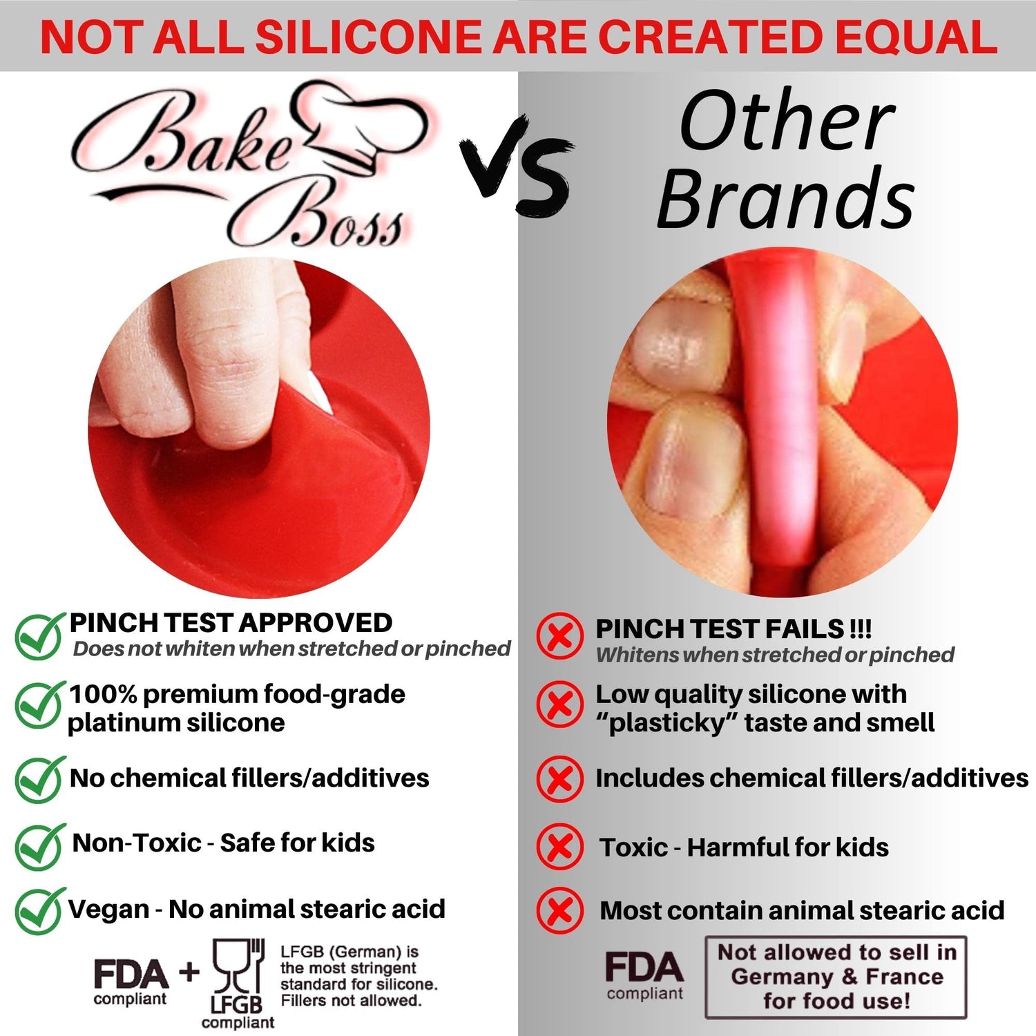- PINCH TEST APPROVED SILICONE: Our silicone muffin pans for baking are 100% BPA free European LFGB food grade silicone passes the "pinch test". Twist our silicone baking cups muffin, and it won't turn white. Absolutely no odor while cooking in this silicone baking pan.