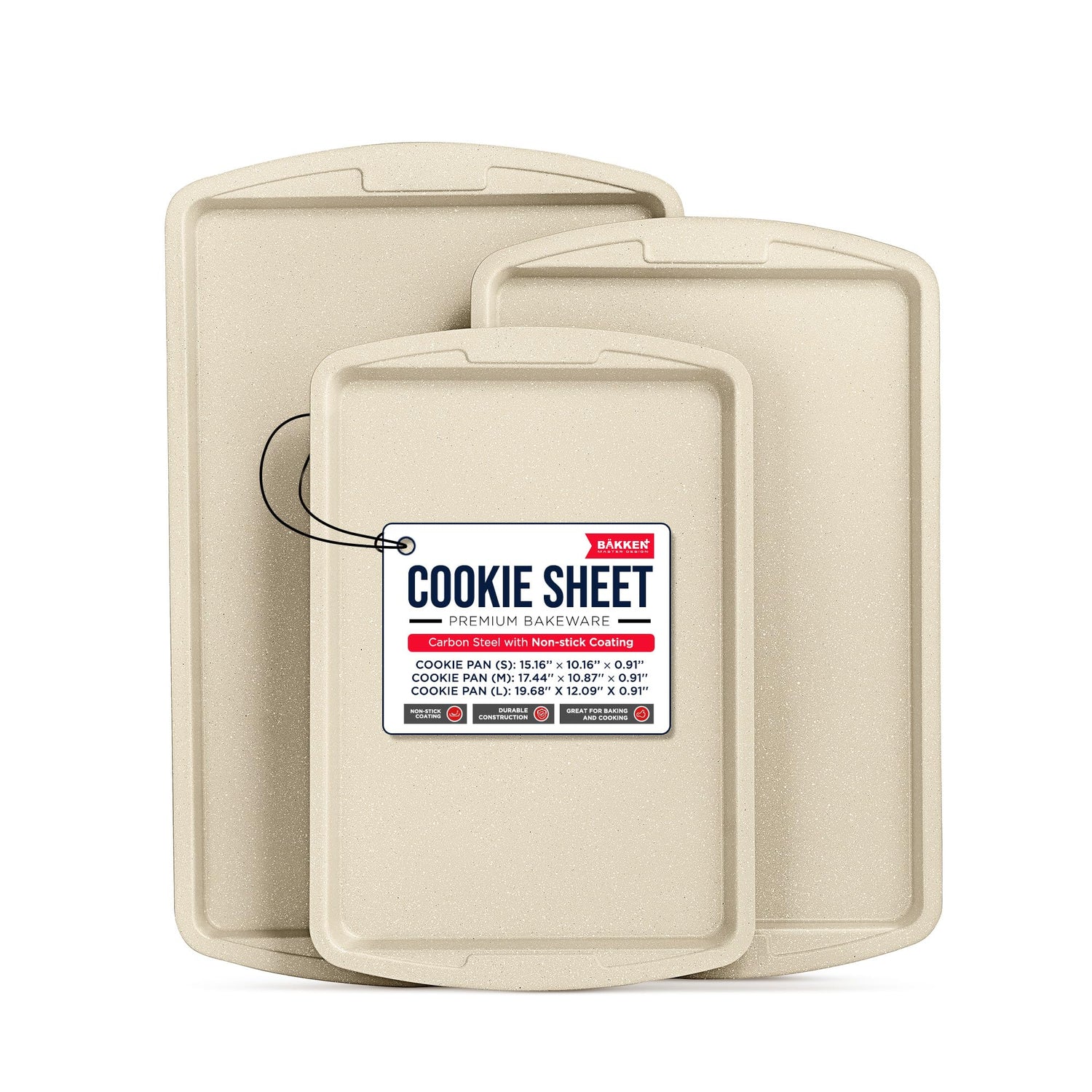 - SUPERIOR NON-STICK PERFORMANCE - enjoy a professional baking experience with Bakken's deluxe nonstick cookie baking sheet set. Featuring a ceramic White marble they are suitable for any level of home baker. With 3 different size options you will have what you need for perfect cookies