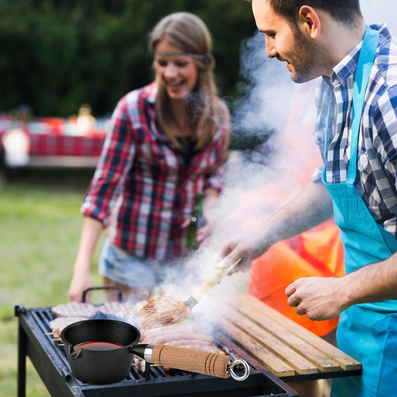 • Intimate Design: The iron pan has grooves designed to hold the brush so that excess sauce can be returned to the pan and also poured out easily; Both brush handle and pot handle have hanging rings for easy drying and storage
