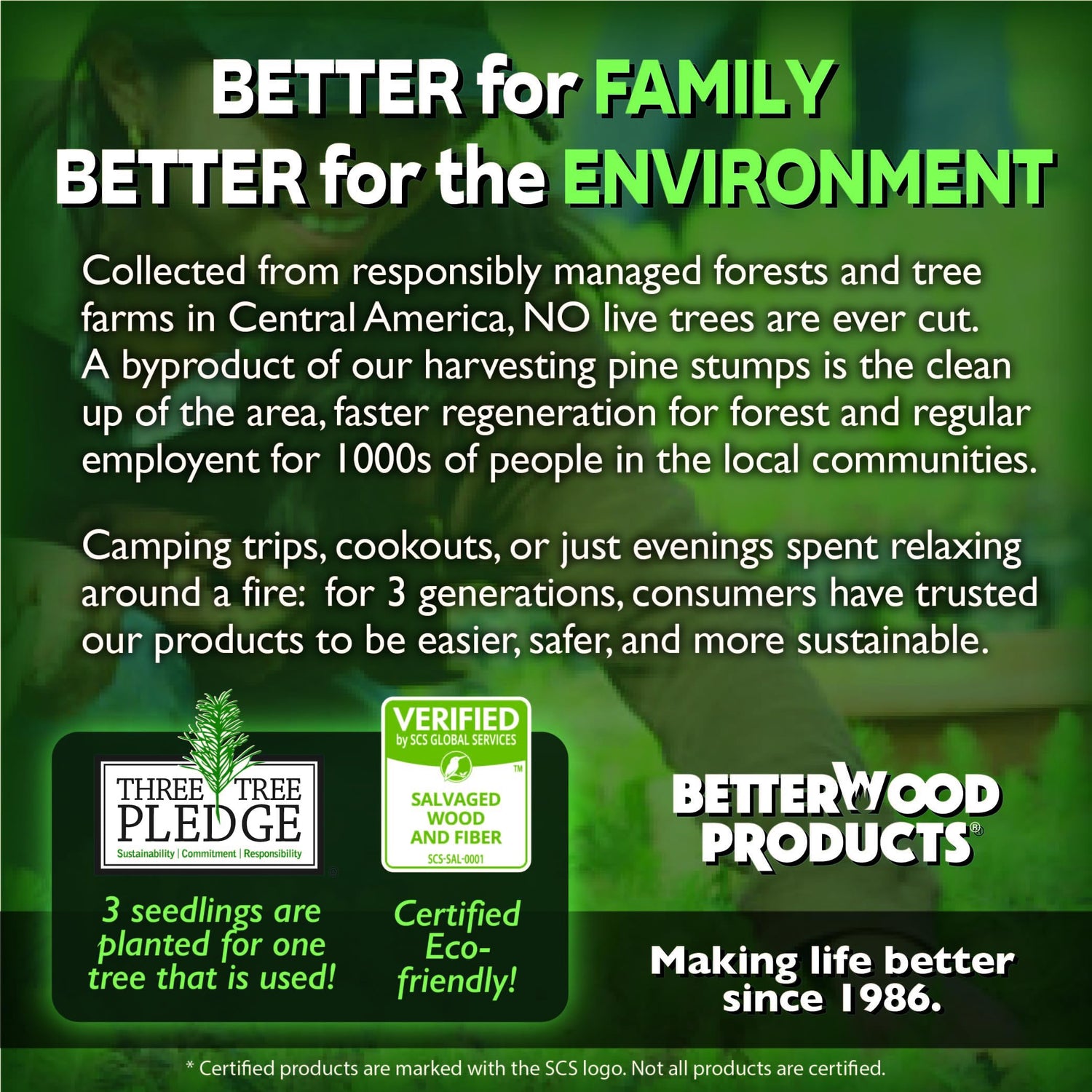 Betterwood 10 Pound Fatwood Natural Pine Firestarter 1 Pack for Campfire, BBQ, or Pellet Stove, Non Toxic and Water Repellent
