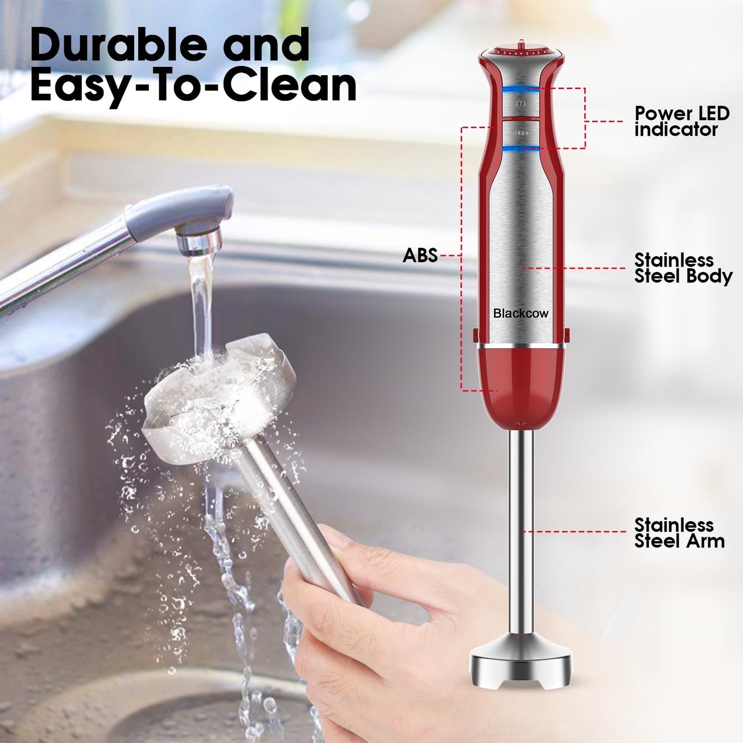 Blackcow Immersion Blender Handheld,800W Powerful Electric Hand Blender with 6-Speed&Turbo,Electric Mixer Handheld for kitchen,Smoothie,Soup,Baby Food,Puree,Drinks,RoseRed