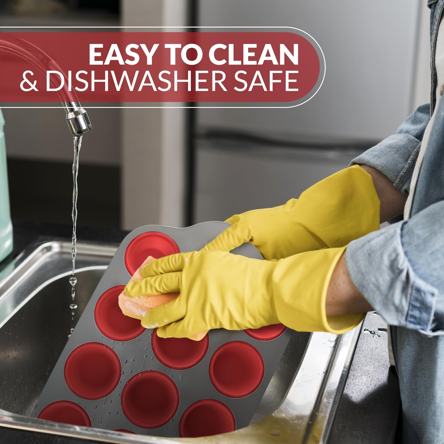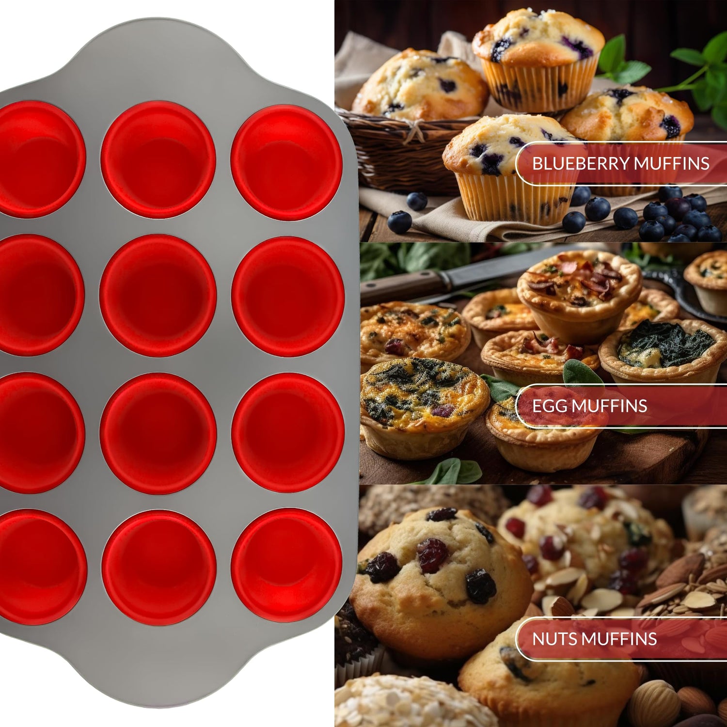 • PROFESSIONAL DESIGN - Wide handles of this muffin pan for toaster oven allow a firm grip. High quality non-stick silicone cups of this muffin tin for baking are dishwasher, freezer and oven safe.