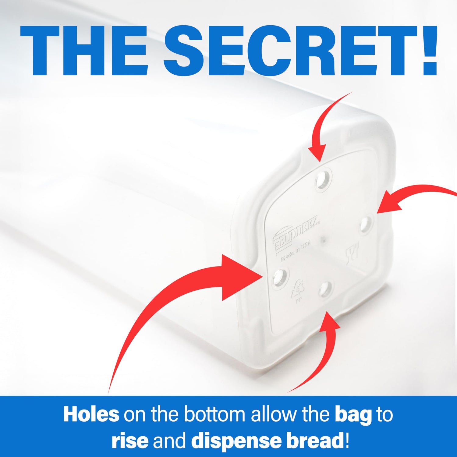 Details: Buddeez' World Famous Bread Buddy Fresh Bread Dispenser keeps bread fresh by keeping the bread in its original bag. Bread Buddy is the perfect storage solution for all sandwich bread! This clever, one-of-a-kind bread box eliminates crushed bread, bothersome twist ties, and inconvenient bag clips. The clear design allows you to see and read all of the variety, brand, and nutritional information on the bread bag or wrapper. The Buddeez sandwich size bread buddy dispenser easily dispenses sandwich bread one slice at a time. To use, simply place the bag of bread inside the Buddy, fold the excess bag or wrapper over the edge of the container, and pull down on the outside of the bag to raise the loaf inside. It dispenses fresh bread one slice at a time with a simple pull down, pop up motion! Remember to replace the lid to keep your sandwich bread fresh. This bread box for kitchen countertop can now fit in the corner of your crowded pantry, or simply stand it up on the kitchen counter or fridge top, completely out of the way. These bread boxes are available in multiple pack sizes of one or two, and lid colors of white or red. Other Uses Include: Bread boxes for kitchen counter, white bread box, bread holder for kitchen counter, breadbox for kitchen countertop, farmhouse bread box, bread box large, bread box plastic, bread buddy - bread keeper storage container, bread container for kitchen counter, bread containers, bread bread organizer for pantry, bread preserver, kitchen counter storage, bread loaf storage container, plastic bread box, bread dispenser container with lid, large bread box for kitchen countertop, bread holder with lid, bread saver container, keep bread fresh container, and bread containers storage.